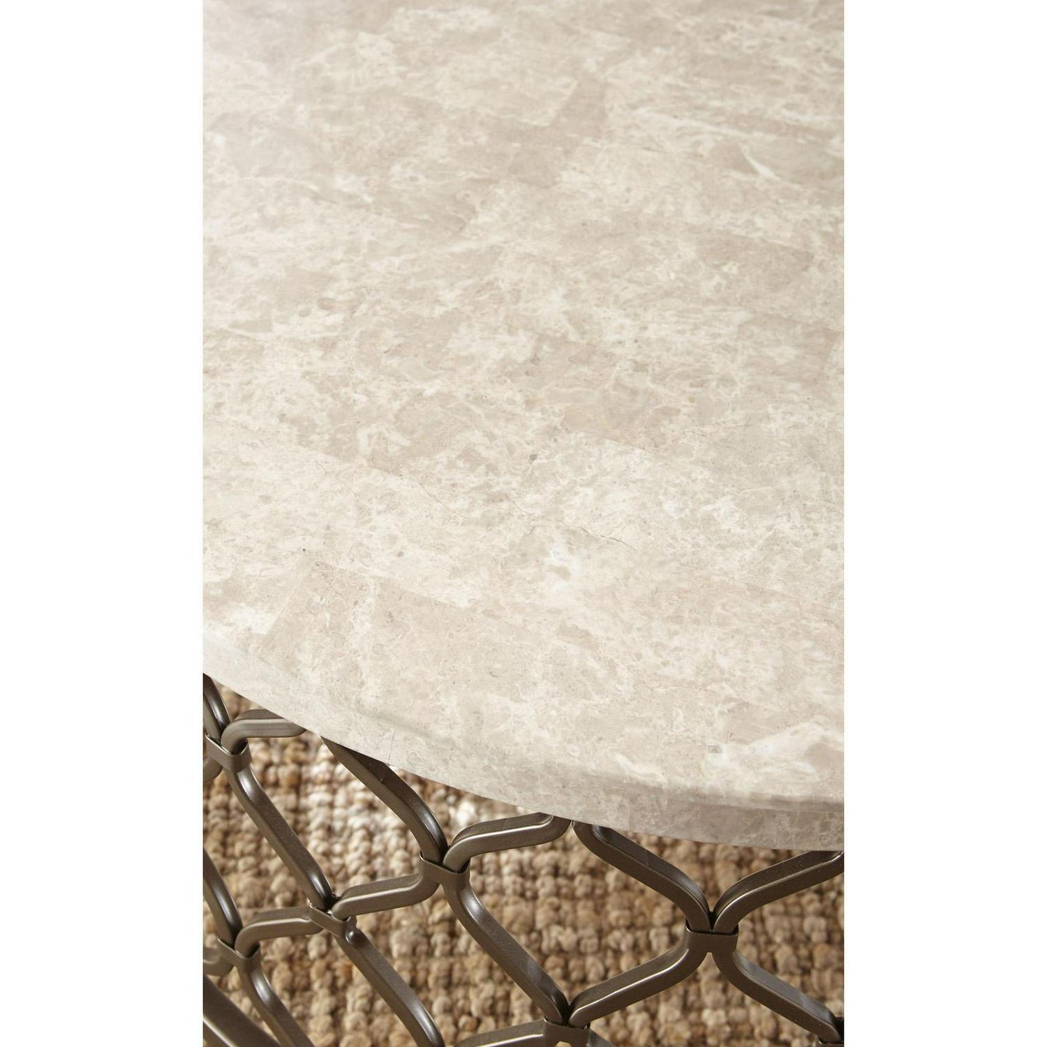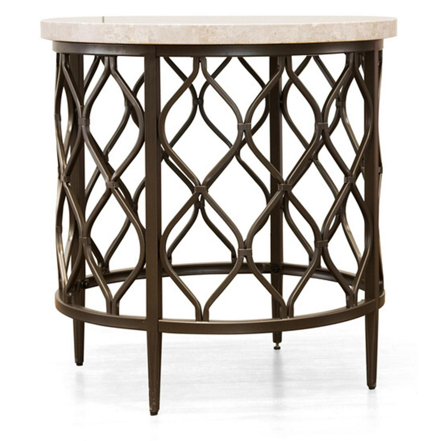 Add a luxe accent next to your transitional sofa or modern bed with the Steve Silver Co. Roland Round End Table. An iron frame features a global-inspired ogee fretwork and has powder-coated bronze finish. The round top is made of off-white marble for contrast. Display decorative pieces or add a table lamp to complete the look.