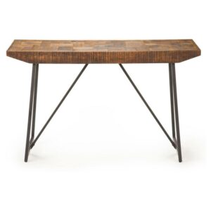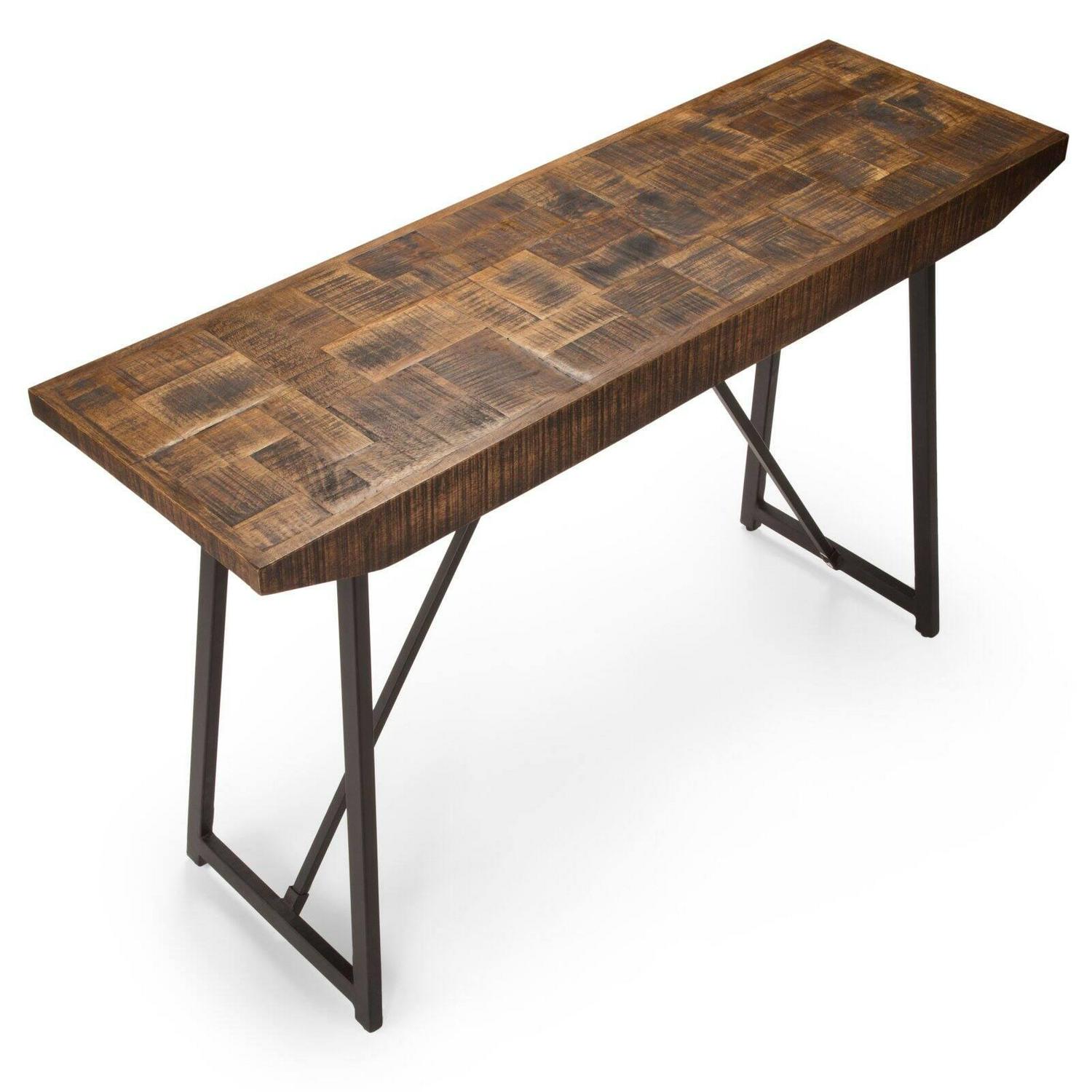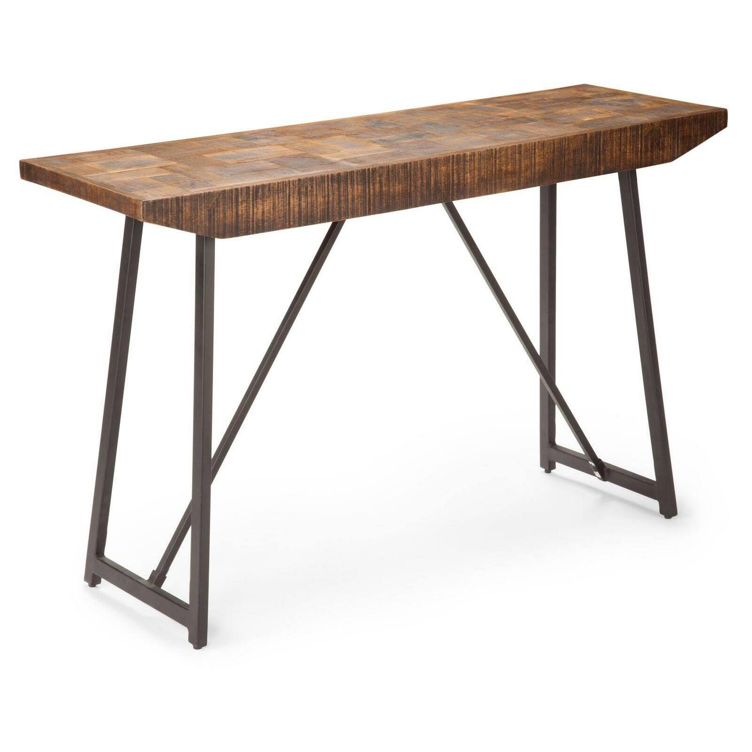 The Steve Silver Co. Walden Parquet Sofa Table will update the look of your living room or den with its chic-industrial style. This sofa table features a sled-style base constructed from durable iron. The top boasts a decorative parquet design and is constructed from mango wood with a lovely natural finish. Pair this piece with other collection elements to create seamless decorative appeal for your space.