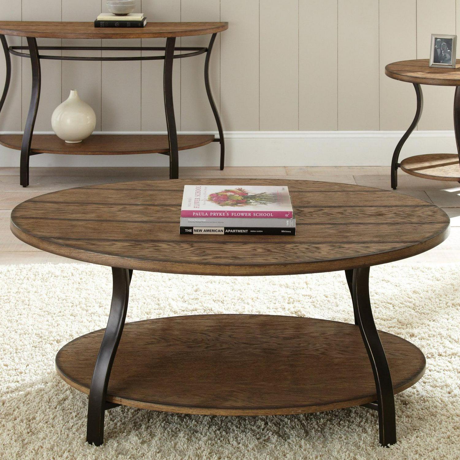 Antique looks and a classic plank-style design make the Steve Silver Denise Oval Light Oak Wood Coffee Table a timeless beauty. Made of durable wood in a gorgeous warm oak finish, this oval table features a modern style that’s perfectly at home no matter your décor. A spacious top surface and open bottom shelf provides storage and display for convenience and beauty. Curved metal legs give sturdy support to this unique and stunning table.