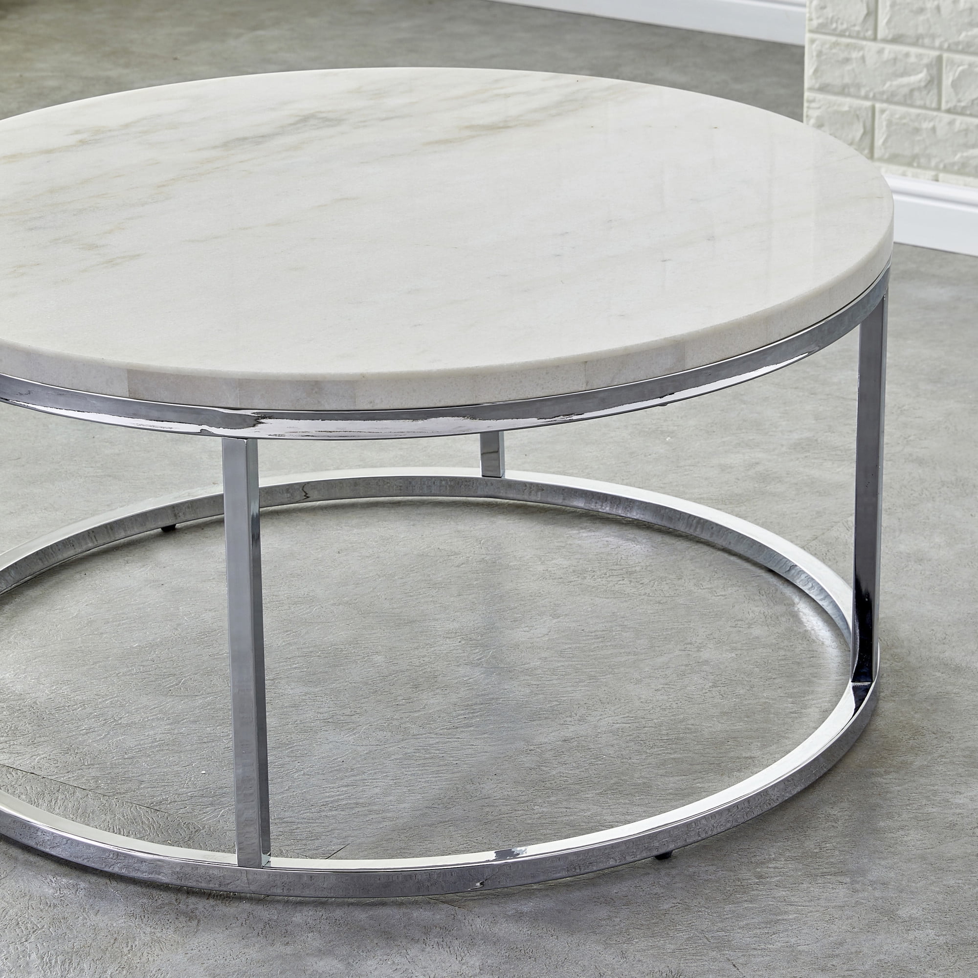 Steve Silver Echo Marble and Chrome Metal Round Coffee Table, White