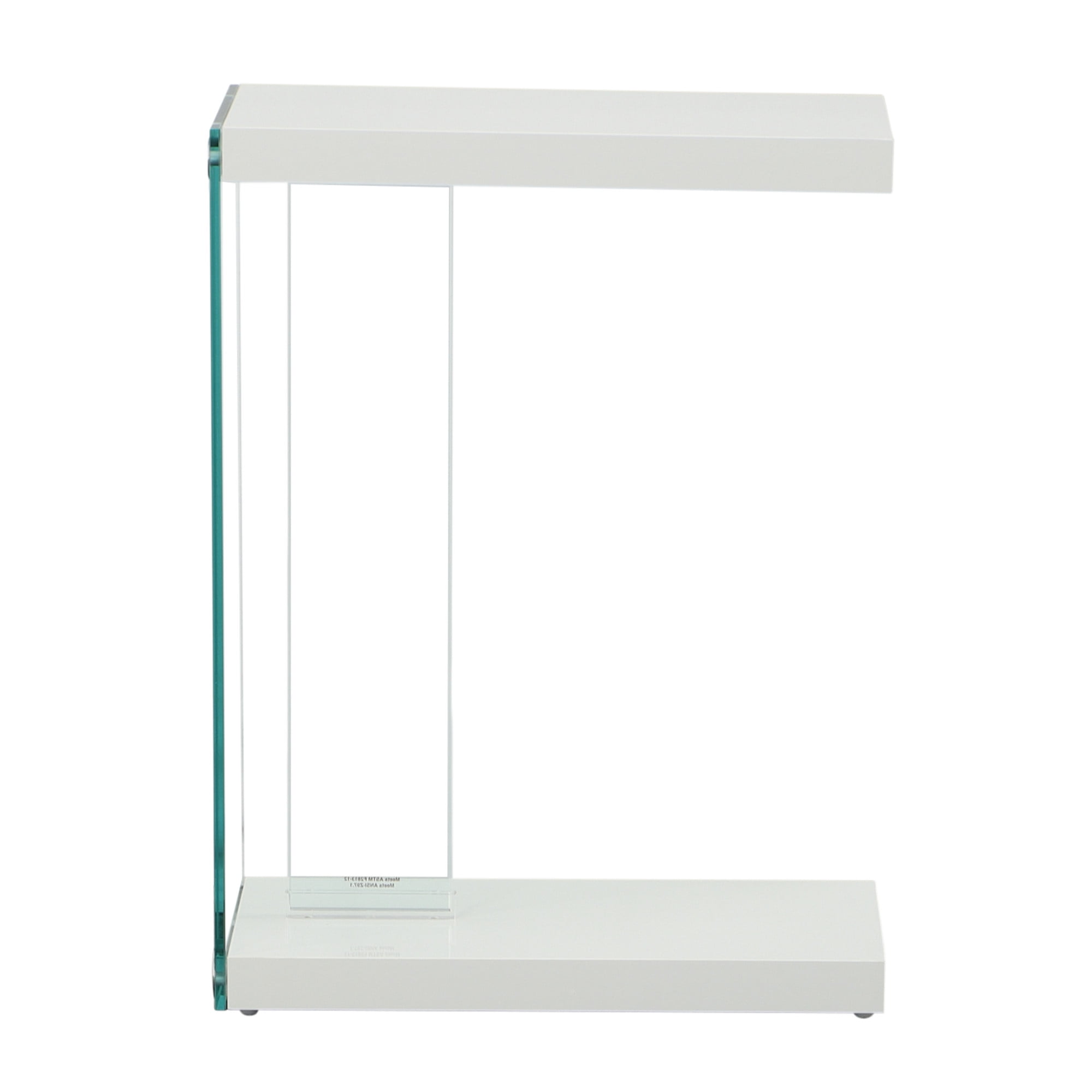 Elevate your indoor living space with the Elaina Chairside End Table, with a sleek, airy design and a functional “C” table configuration. Its glossy white finish blends with various contemporary decors, providing a sophisticated touch that doesn’t overpower your room’s aesthetic. The table is supported by tempered glass and acrylic elements, creating a light, unobtrusive footprint that’s versatile and easy to incorporate into your existing design scheme. Whether placed beside an upholstered furniture piece or tucked under a sofa or loveseat, the Elaina End Table serves as a convenient work area or a stylish surface.