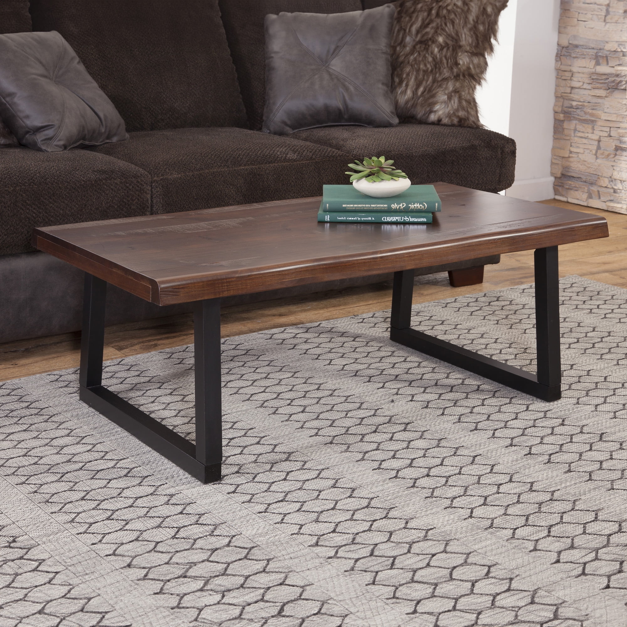 The Jennings Cocktail Table presents a rustic modern style in a two-tone finish that warms up any room. Sturdily constructed with a solid pine top with a live edge in a rustic, distressed cherry finish and a solid pine ebony finished base. Also available in this collection is the matching end table (purchase separately). Your purchase includes one Cocktail Table.