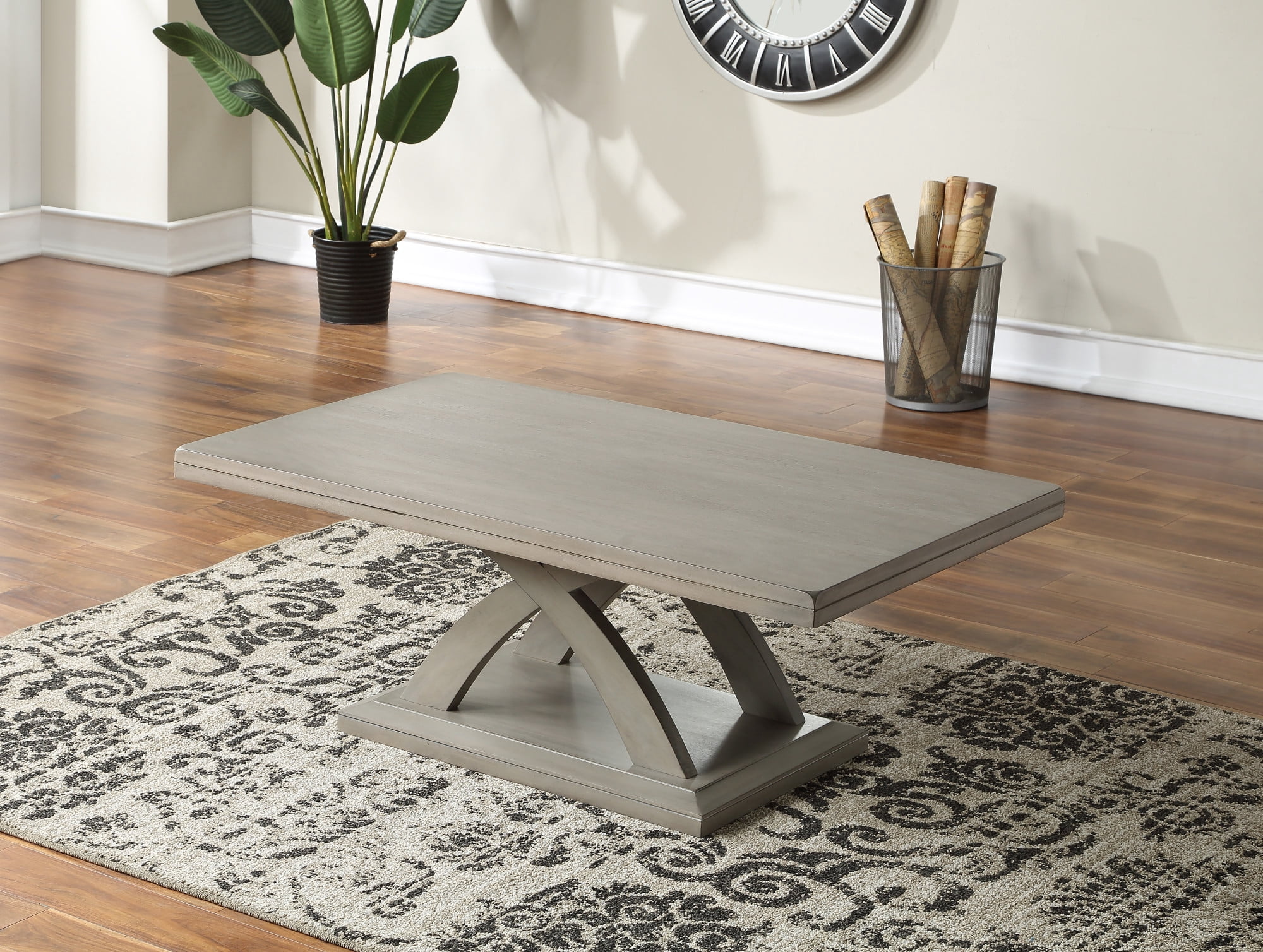 The Jocelyn Cocktail Table is an exquisitely crafted, uniquely casual yet sophisticated table featuring a decorative base with a thick top. The stylish pale grey finish is a great neutral and blends well with most decors. This table has a unique minimalist frame and sports clean lines to bring out the best in the surrounding decor. Also available in this collection (purchase separately) are the matching end table and sofa table. Your purchase includes one cocktail table.