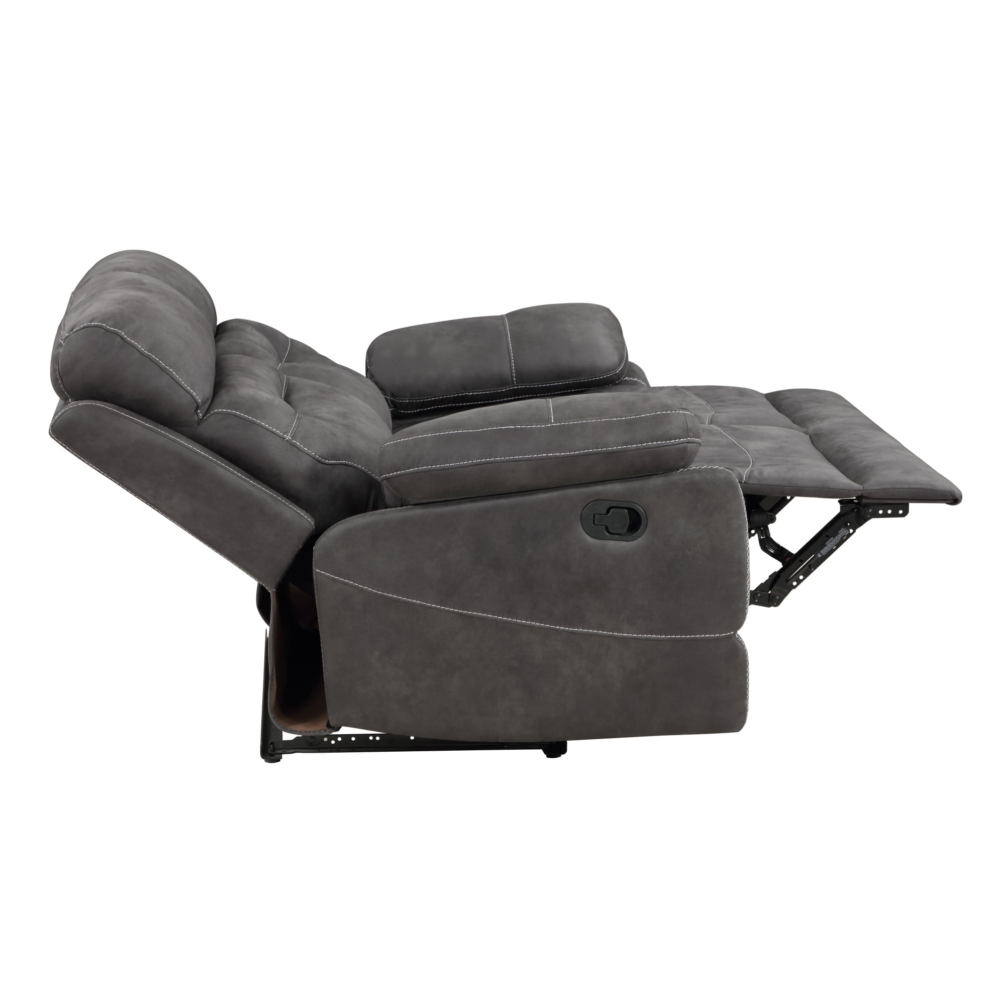 Constructed from fiber wrapped foam encased in a bomber jacket microsuede Effortless one-pull manual reclining motion Removable backs make it easy for transport into small hallways, doors, etc. No-sag steel sinuous springs provide an exceptional combination of cushioning and strength