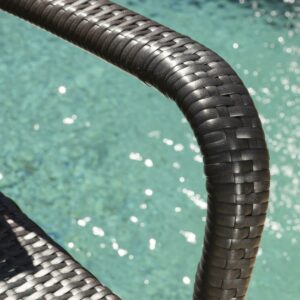 Stewart 30-Inch Outdoor Brown Wicker Barstool (Set of 2) The Stewart outdoor wicker barstool set are made out of tightly woven PE wicker with a strong powder coated iron frame, allowing them to withstand outdoor weather while still looking as perfect as the day they arrived.