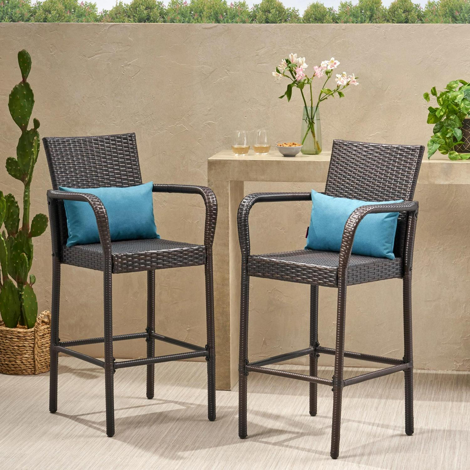 Stewart 30-Inch Outdoor Brown Wicker Barstool (Set of 2)
