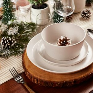 Stone Lain Albie Rustic Stoneware Dish Set, 32-Piece Round Dishes for 8, Snow White