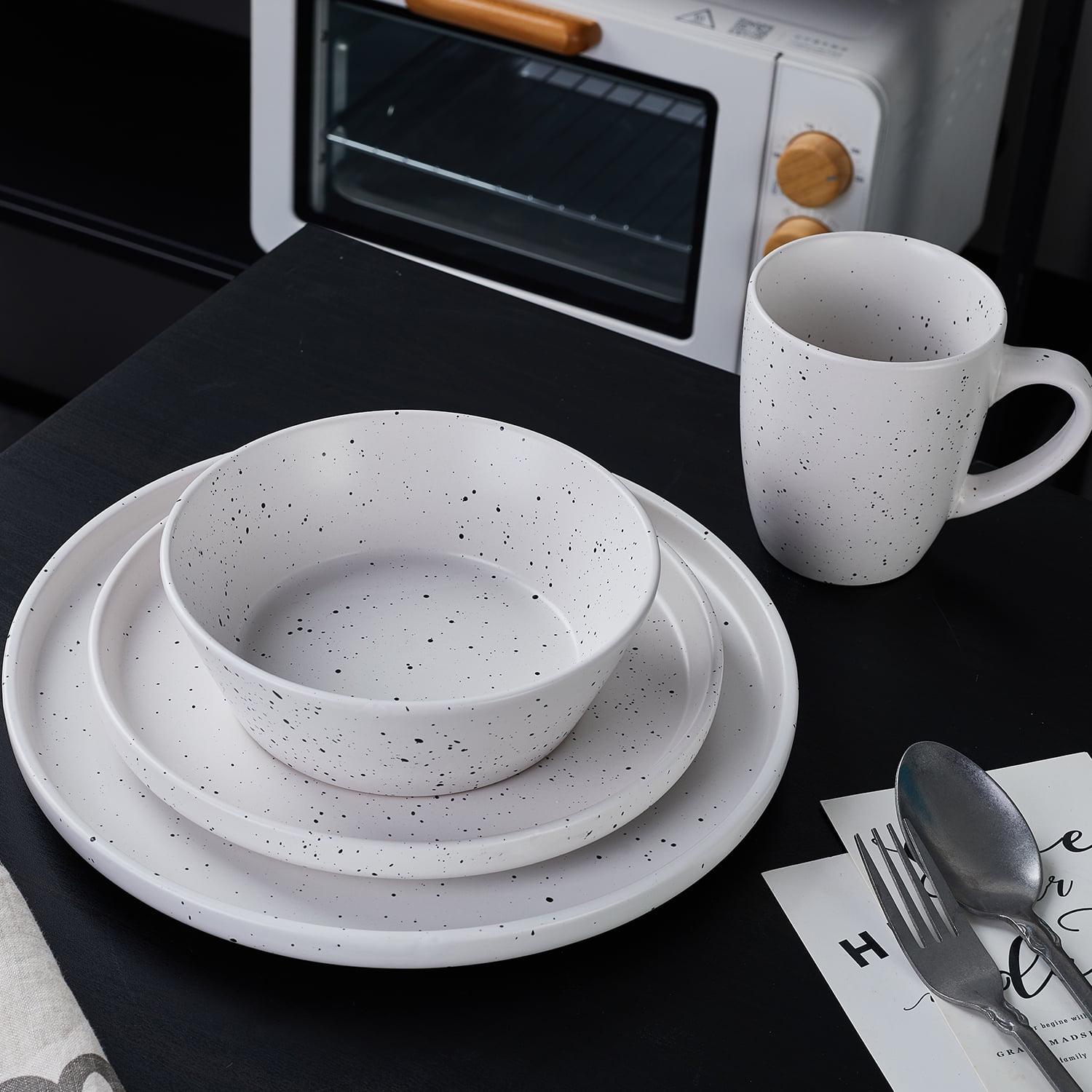 – SPECKLED DESIGN: Jade features a timeless speckled design with either a white, taupe or light gray backdrop, making this dish set an interesting addition to any setting.