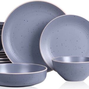 – SPECKLED DESIGN: Lauren features a stunning speckled design with either an off white, charcoal, green or light gray stoneware backdrop. Ridged rims and bowls round out the beautiful craftsmanship of these dishes.
