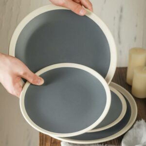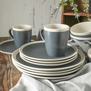 Stone Lain Serenity 16-Piece Stoneware Round Dinnerware, Service for 4, 2-Tone, Dark Gray-Cream