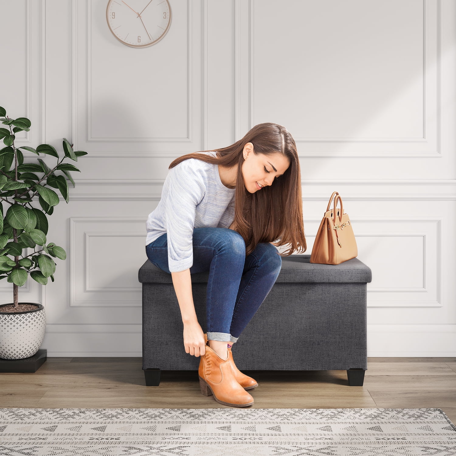 Storagebud Linen Ottoman Storage Bench ,30″ Bench, Gray The Storagebud tufted storage ottoman bench serves as a coffee table ottoman for living room or fall décor. This ottoman with storage is a perfect choice to help you make the most of your living space by acting as both a storage container and a comfortable ottoman or even a footrest. Our storage ottoman can fold flat when not in use, adapting the ottoman to suit your storage needs and when in need of additional seating. The durable fabric, Gray ottoman helps organize essentials and accessories with this multipurpose storage bench. The sturdy, cushioned lid of our ottoman for bedroom storage is comfortable and supportive, with an invisible hinge design that allows it to be bent and lifted up from either side without removing the entire lid. The large ottoman space stores bulkier items like throw blankets and pillows.