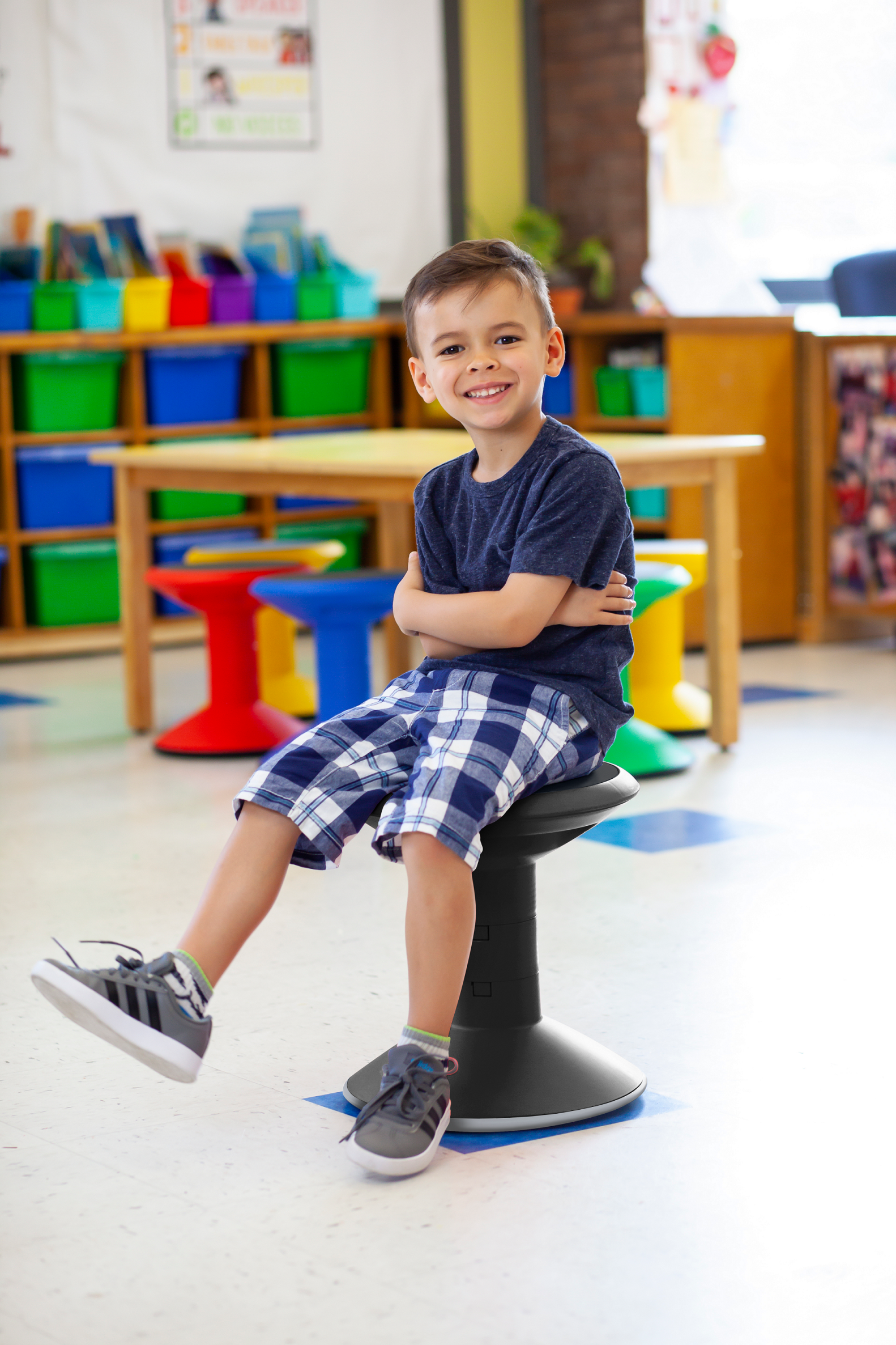 This Storex Wiggle Stool features a thick and soft cushion up top that makes a very comfortable seat your child can sit on all day. Kids can wiggle, wobble, move side-to-side, back and forth without fear of tipping over. The rubberized bottom of our stool ensures that it remains under your child without slipping. The base also protects against scratching the floor tiles, wood, carpets or whichever surface it is on. Featuring an adjustable seat height of 12-18″ in 2-inch increments, these wiggling chairs grow with your child, making it perfect for kids of age 6 upwards. Adjusting the height is also quick and easy, while its tamper-proof design ensures it cannot be adjusted while in use. This stool effectively turns conventional sitting into a calorie-burning activity with constant core engagement, something that energetic kids will certainly appreciate. It also provides an outlet to move around without distracting other students or co-workers. With a weight of about 6lbs, this Storex Wiggle Stool is perfectly light and portable that a child can easily move it around.