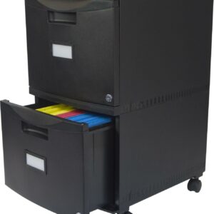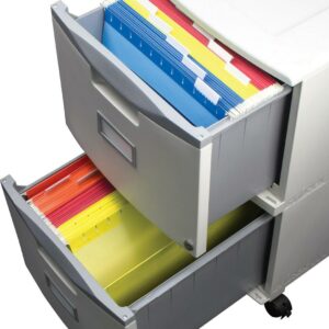 This all-plastic Storex File Cabinet is an affordable alternative to bulky metal designs. Neatly organize and store your papers, documents and folders away for later use. Compact and light, this cabinet is easily moved from room to room or up and down stairs. With its low profile, this document organizer fits under desks, in closets, or tucked away in a corner. Each drawer holds letter or legal hanging file folders. Easily identify the contents with the integrated label holder. The Storex File Cabinet makes a practical and stylish addition to any home or office.