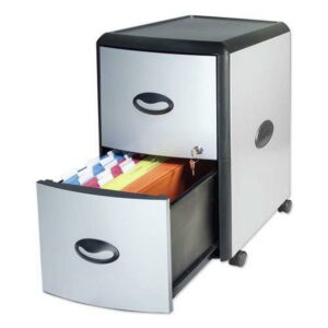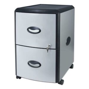 Storex Two-Drawer Mobile Filing Cabinet Metal Siding 19w x 15d x 23h Silver/Black 61351U01C