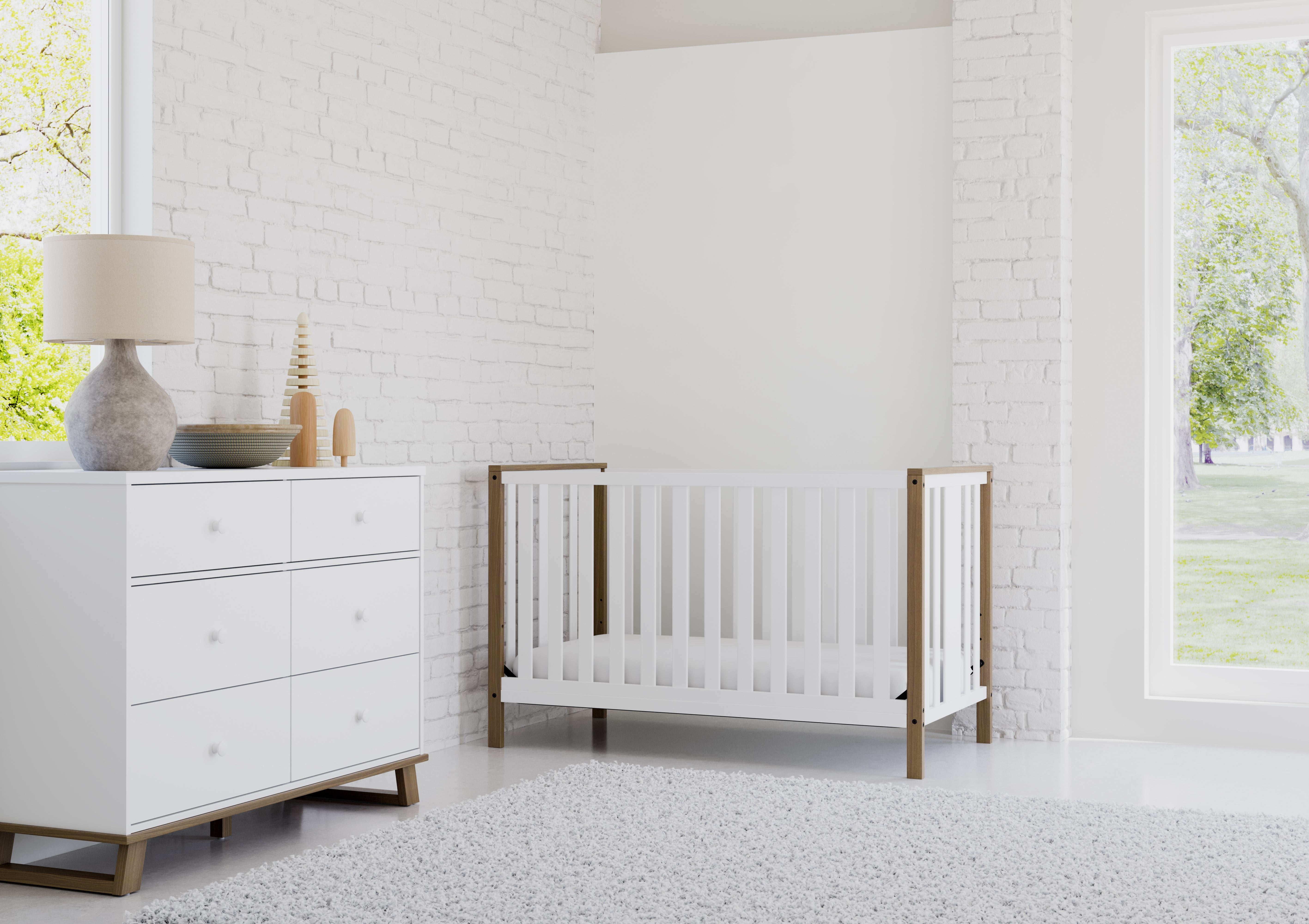 Storkcraft Modern 6 Drawer Nursery Dresser, White with Vintage Driftwood