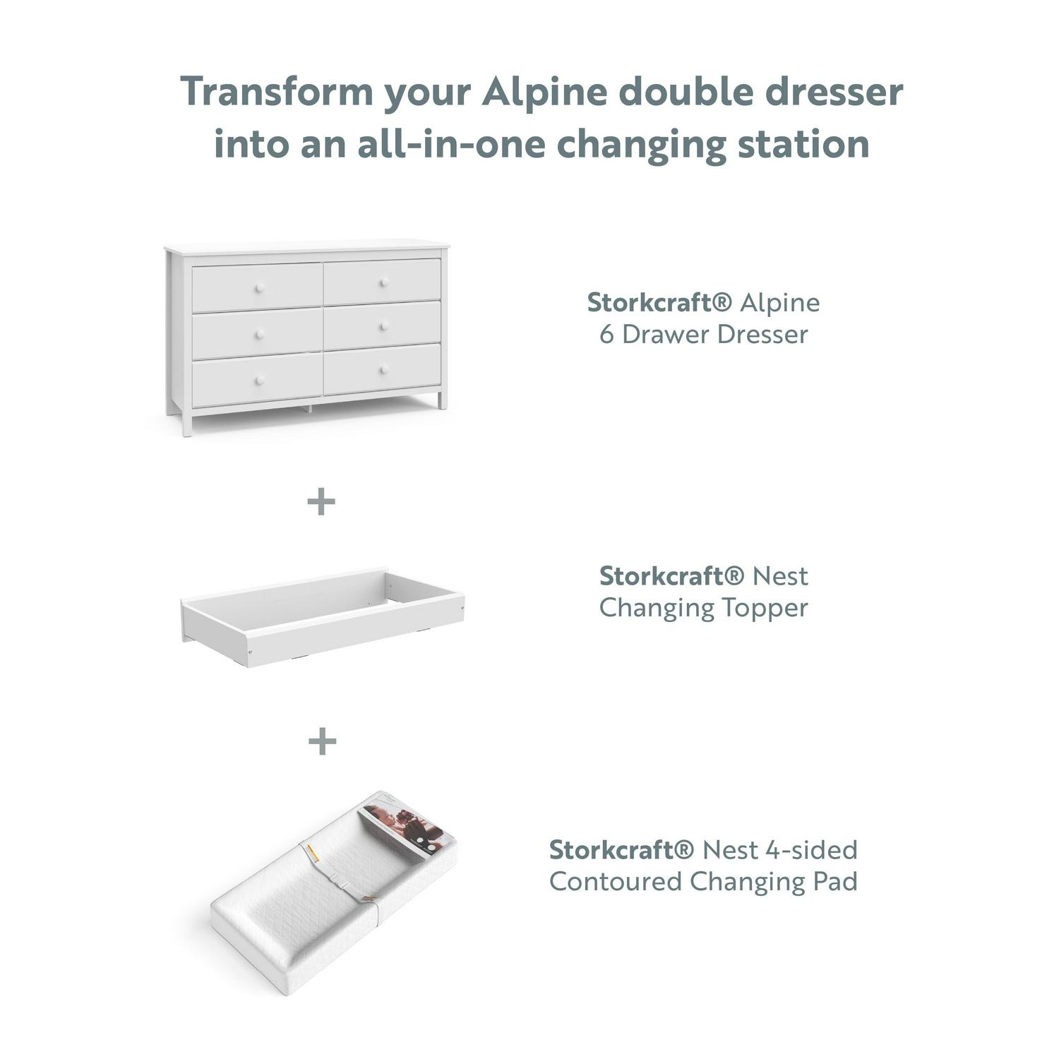 – COMPATIBLE WITH CHANGING TOPPER: Transform your Storkcraft Alpine 6 Drawer Double Dresser into a multifunctional changing station with the compatible Storkcraft Nest Changing Topper (sold separately)