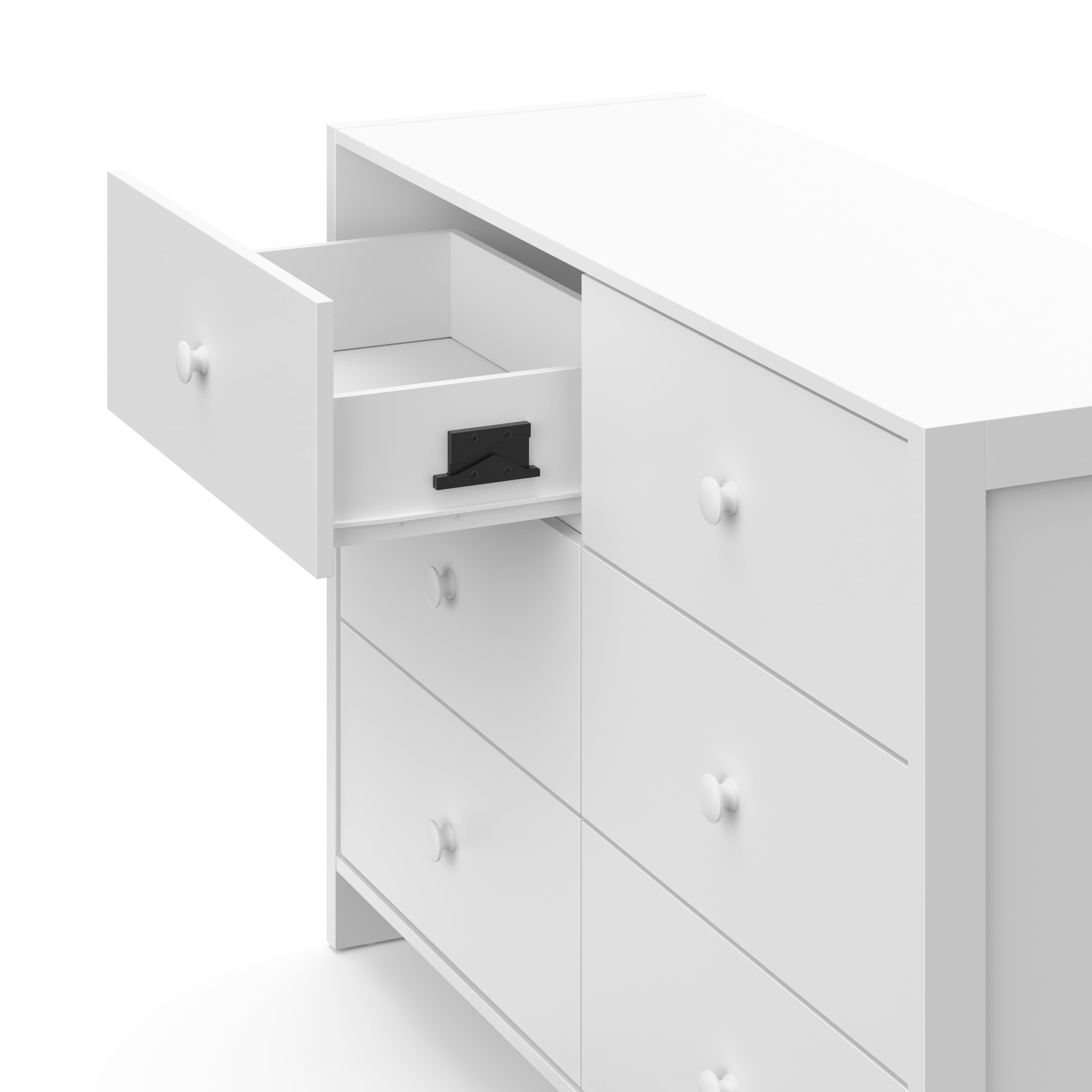 Introducing the Calabasas 6 Drawer Dresser, where versatile design meets California style, all at an unbeatable value. This dresser embodies the perfect blend of chic aesthetics and abundant storage, boasting solid side panels and a modern-minimalist allure that effortlessly complements any nursery or kids’ room. Featuring six spacious drawers, the Calabasas Dresser offers ample storage space to keep your child’s essentials neatly organized while maintaining a sleek and uncluttered look. Whether it’s a cozy nursery, a vibrant children’s bedroom, a welcoming guest room, or even a lively playroom, the Storkcraft Calabasas Dresser is a versatile must-have that promises to elevate any home setting with its understated elegance. Engineered with utmost attention to safety, the Calabasas 6 Drawer Dresser surpasses stringent standards set by the Consumer Products Safety Commission (CPSC) and the American Society for Testing and Materials (ASTM). Our top priority is your child’s safety, reflected in our advanced interlocking drawer system and reliable tip-over restraint kit, designed to significantly reduce the risk of furniture tip-over incidents. Featuring pre-installed Euro drawer glides, assembly is a breeze, ensuring that organizing your little one’s clothes and essentials becomes a hassle-free experience. With its timeless design and practical functionality, the Calabasas Dresser becomes a cherished addition to any family’s home, seamlessly adapting to the evolving storage needs of your growing child. Complete your Storkcraft Calabasas collection with the Storkcraft Calabasas 3-in-1 Convertible Criband Storkcraft Calabasas Swivel Glider for a cohesive and stylish nursery or kids’ room ensemble.