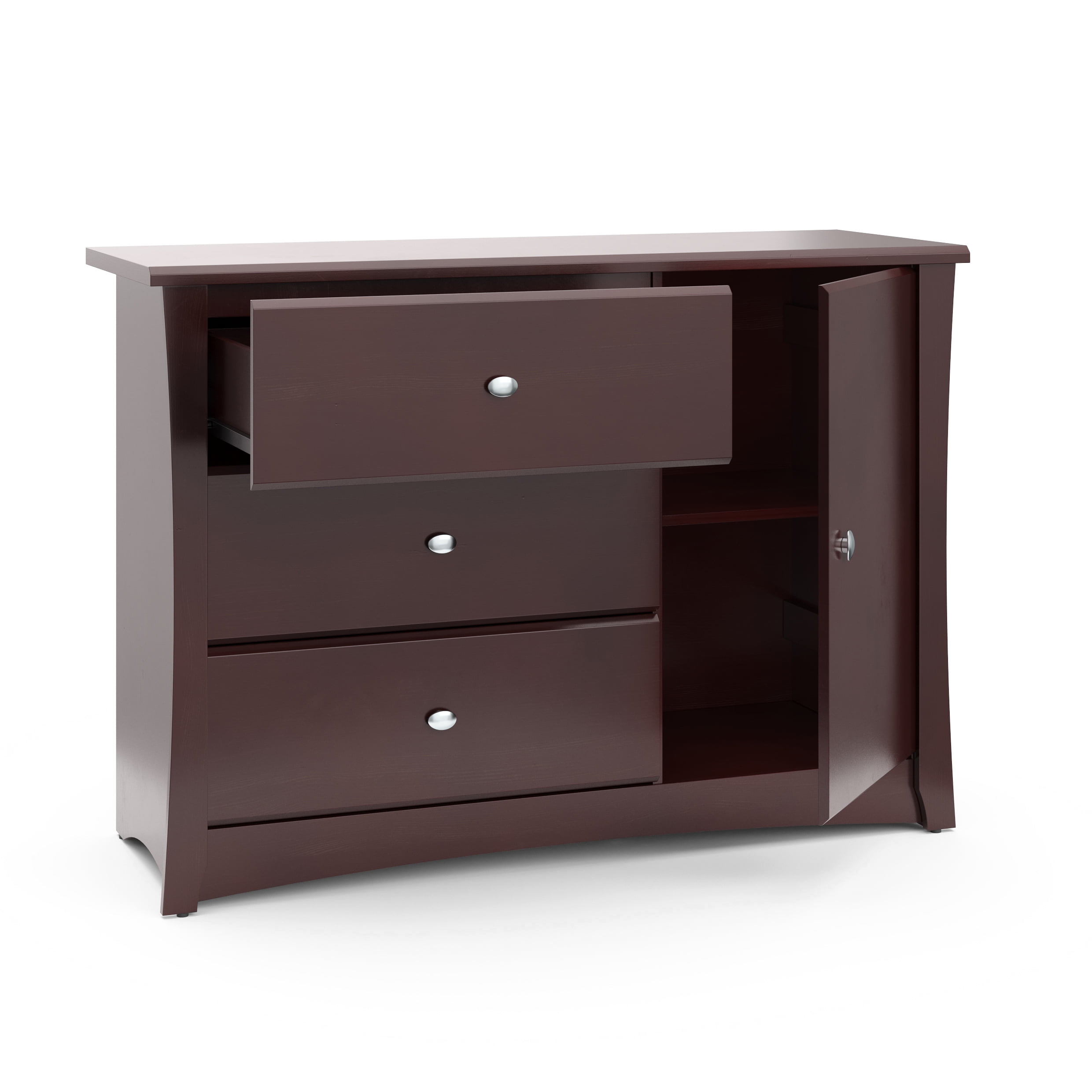 - With 3 spacious drawers and 2 concealed shelves to fit clothes, accessories or toys, the Combo Dresser will help you keep the nursery, toddler’s room or kid’s room neat & organized. The stylish design will look beautiful for years.