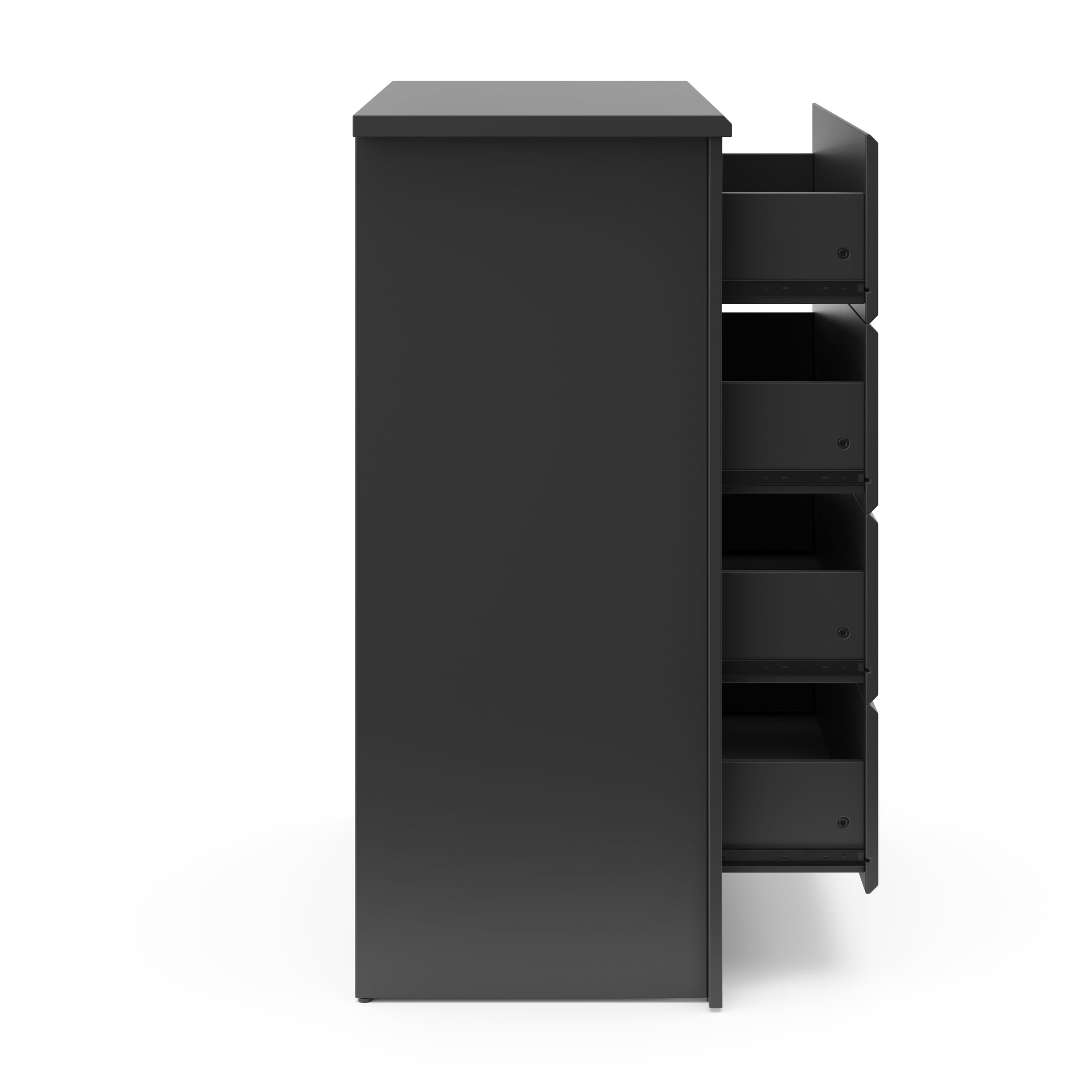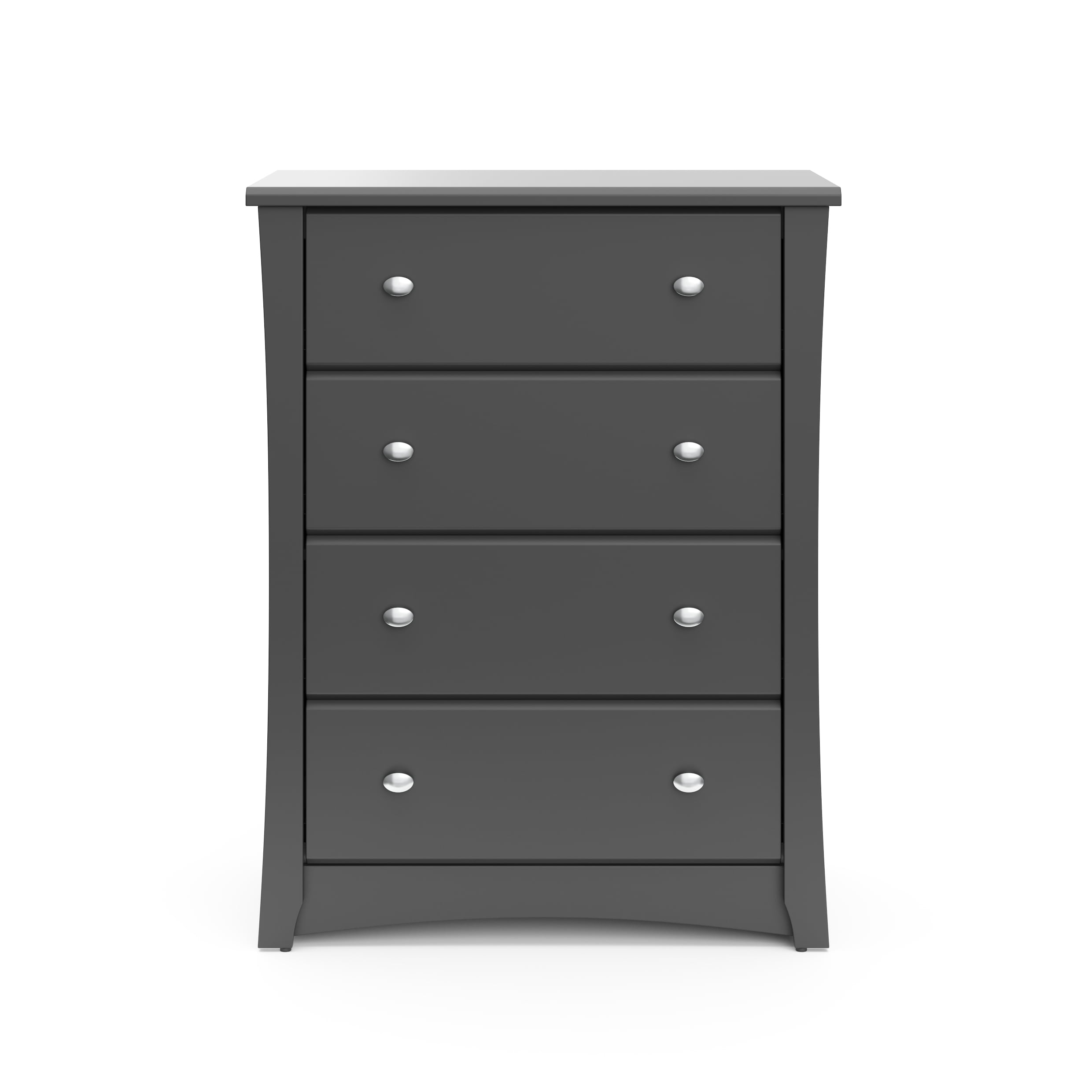 The Storkcraft Crescent 4-Drawer Chest is a universal nursery and bedroom storage solution. Crafted from engineered wood, the Crescent features stylish metal knobs for modern flare. This vertical dresser is equipped with durable steel hardware, Euro-glide drawers with safety stops, and is fastened with German cam locks. The Crescent is expert tested by independent laboratories to meet the highest standards for your child’s safety. In addition, it complies with all applicable federal anti-tipping standards. Complete the collection with the matching , , and . Exclusively from Storkcraft, proud recipient of the 2022 Women’s Choice Award for 9 out of 10 Customer Recommended Baby & kids furniture. Available in White, Espresso, Black, and Pebble Gray.