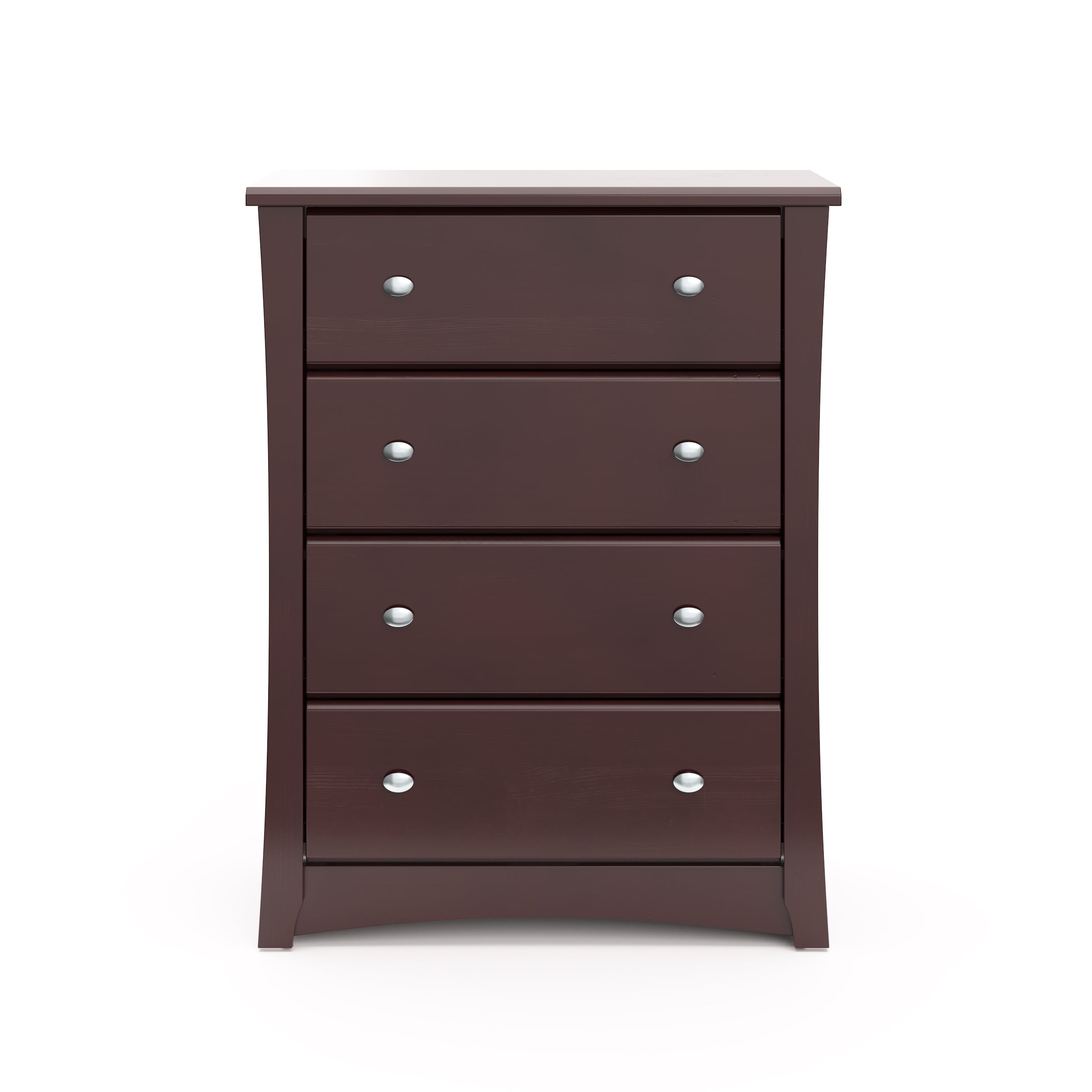 The Storkcraft Crescent 4-Drawer Chest is a universal nursery and bedroom storage solution. Crafted from engineered wood, the Crescent features stylish metal knobs for modern flare. This vertical dresser is equipped with durable steel hardware, Euro-glide drawers with safety stops, and is fastened with German cam locks. The Crescent is expert tested by independent laboratories to meet the highest standards for your child’s safety. In addition, it complies with all applicable federal anti-tipping standards. Complete the collection with the matching . Exclusively from Storkcraft, makers of quality nursery and kids’ bedroom furniture since 1945 and proud recipient of the Parent Tested Parent Approved (PTPA) Seal of Approval.