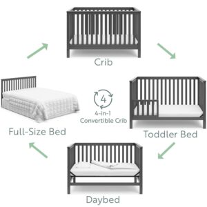 – 4-IN-1 CONVERTIBLE CRIB: Converts from baby crib (mattress sold separately) to toddler bed (compatible with 1 or 2 toddler guardrails, each sold separately), daybed, and full-size bed with headboard only (compatible full-size conversion kit sold separately)