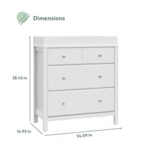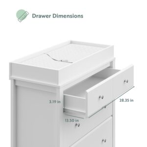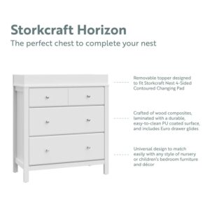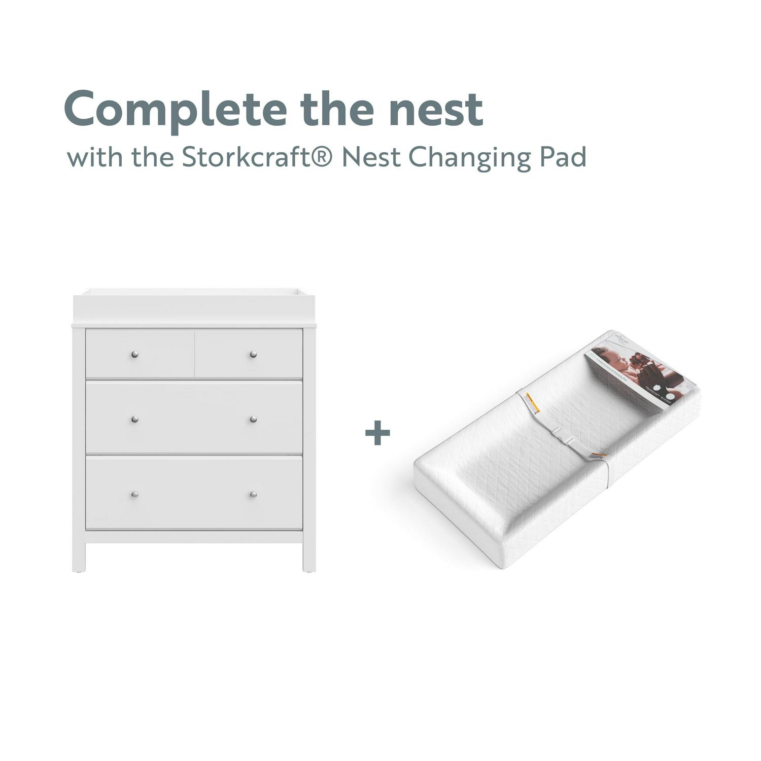 The Storkcraft Horizon 3-Drawer Chest with Changing Topper combines modern design, convenient storage, and convertible functionality. The changing topper is designed to exclusively fit the Storkcraft Nest 4-Sided Contoured Changing Pad does not fit standard-size changing pad. With its removable changing topper, this vertical dresser is crafted to serve families beyond the baby years. During the baby years, use the Horizon as an all-in-one changing table with storage in the nursery. When your child has grown, remove the changing topper and use as a bedroom storage chest for years after. The Horizon is crafted of wood composites, laminated with a durable, easy-to-clean PU coated surface, and includes Euro drawer gliders. Complete the collection with the matching Horizon 5-in-1 Convertible Crib. Storkcraft is the proud recipient of the PTPA Seal of Approval, and 2022 Women s Choice Award for 9 out of 10 Customer Recommended Baby & Kids Furniture. Available in White, Espresso, and Pebble Gray.