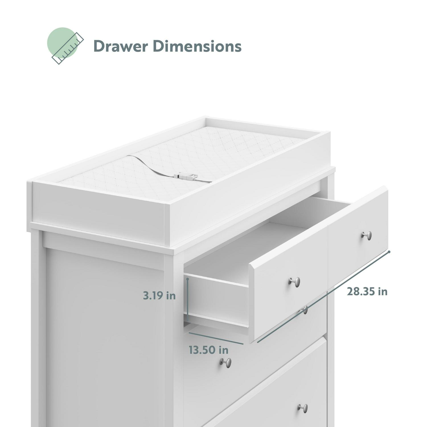 – Built-in, removable changing topper: To complete your Storkcraft Horizon 3 Drawer Chest, pair with the Storkcraft Nest 4-Sided Contoured Changing Pad (Horizon changing topper only fits Storkcraft Nest 4-Sided Contoured Changing Pad does not fit standard-size changing pad)
