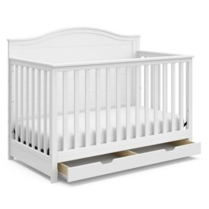 Storkcraft Moss 5-in-1 Convertible Baby Crib with Drawer, White