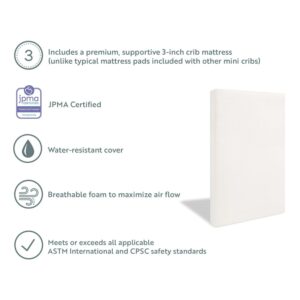 Storkcraft Petal Mini 4-in-1 Convertible Baby Crib with Mini Crib Mattress, White