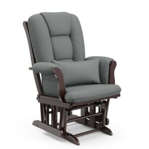 The Storkcraft Tuscany Glider and Ottoman give an instant lift to the decor of your nursery. The Storkcraft Tuscany Glider and Ottoman makes feeding time easy for mother and child while adding a touch of charm to the room. The soft polyester gives a comfortable feel while being durable. With enclosed metal ball-bearings, this wooden glider allows for incredibly smooth rocking. Solid wood construction gives these pieces a sturdy feel that you’ll appreciate far beyond the baby years. With a range of classic finishes and cushion colors to choose from, it’s easy to coordinate with any indoor nursery space.