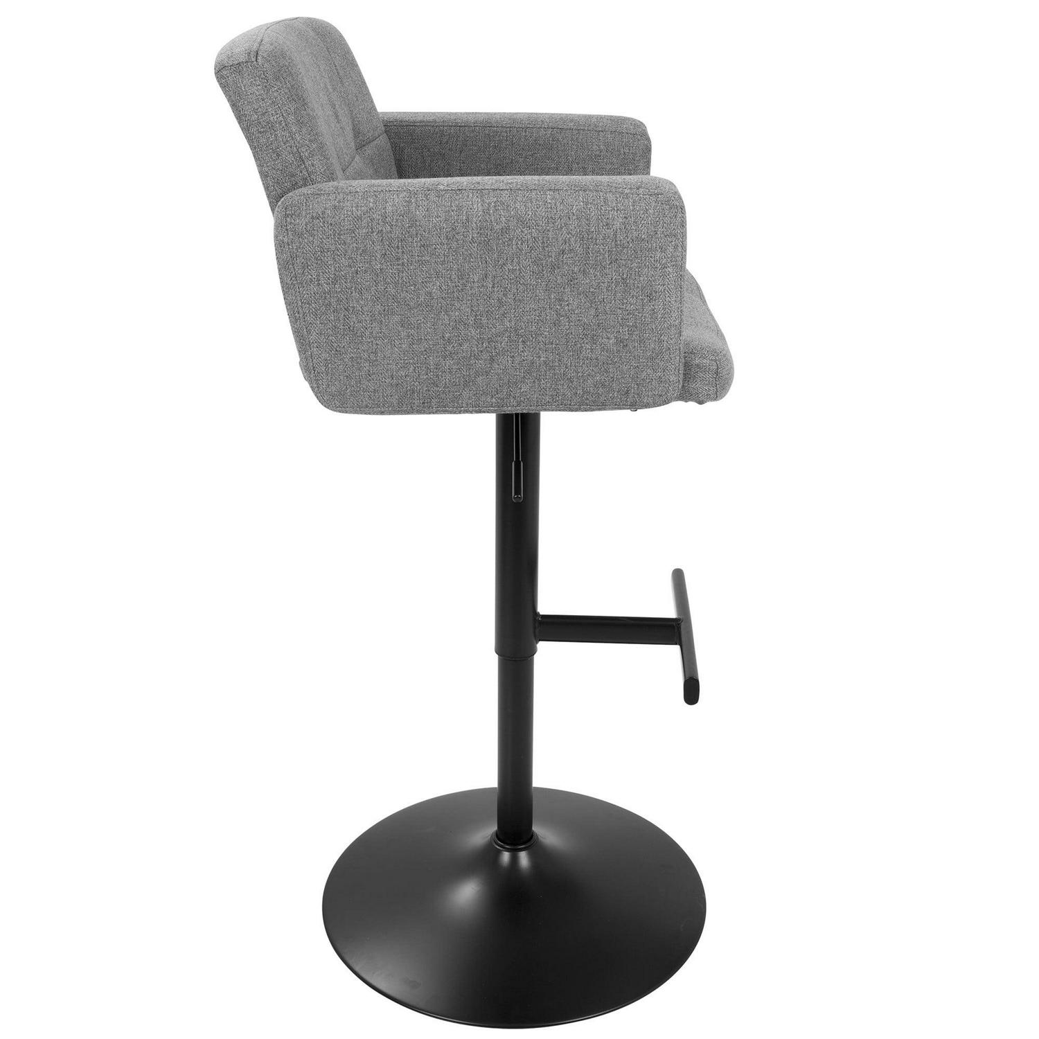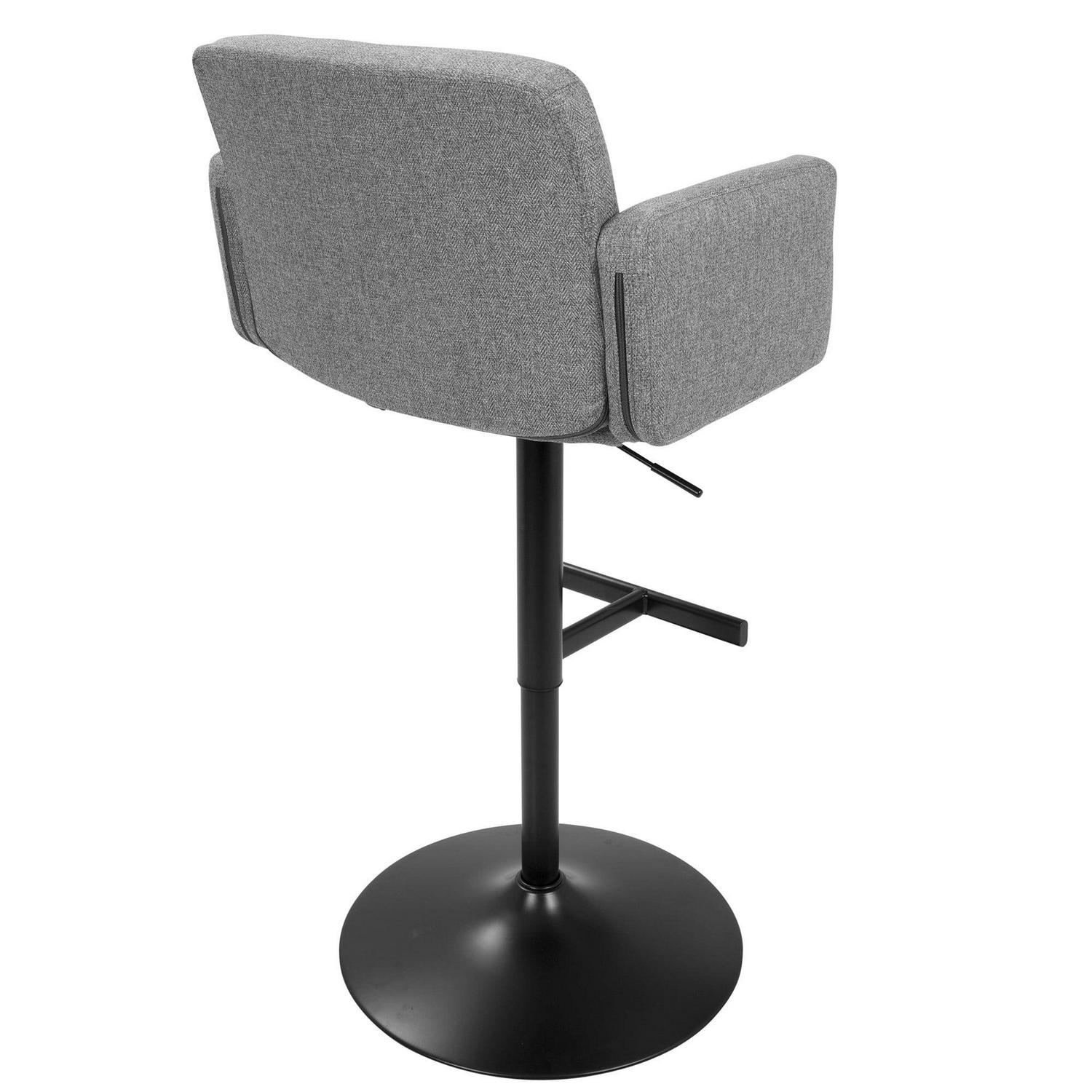 Stout Contemporary Adjustable Barstool with Swivel in Black with Grey Fabric by LumiSource