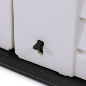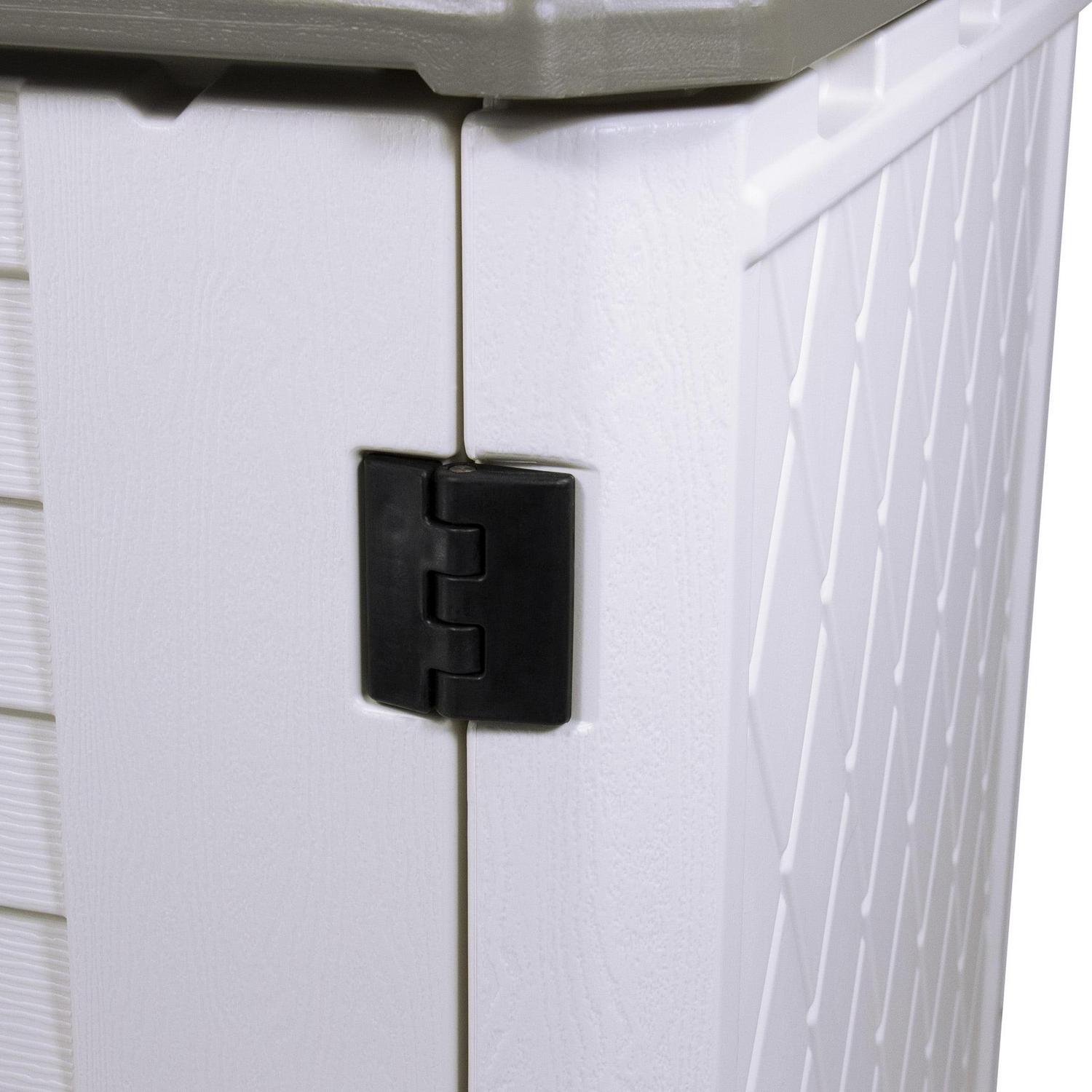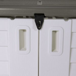 The Stout Stuff Horizontal Storage Shed with its white and gray finish is the perfect place to store your outdoor items for easy access. It has a lockable (locks sold separately) multi-opening door design that is suitable for storing lawn and garden supplies, tools, bicycles, BBQ grills, sports equipment, trash cans and more. This utility shed features heavy duty hinges, locking step latch, lid support and is made with strong, double-wall construction to withstand harsh weather elements while keeping your items clean and protected. Its large capacity and three openings allow you to quickly add or remove items as needed. The Stout Stuff 26 cut Horizontal Utility shed measures 50 in. x 29 in. 41 in., making it an ideal size for most backyard spaces.