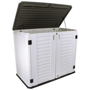 – Perfect for storing two 22 Gal. Trash Cans, Bicycles, Toys, Lawn Equipment, BBQ Grills, Garden Accessories, and more