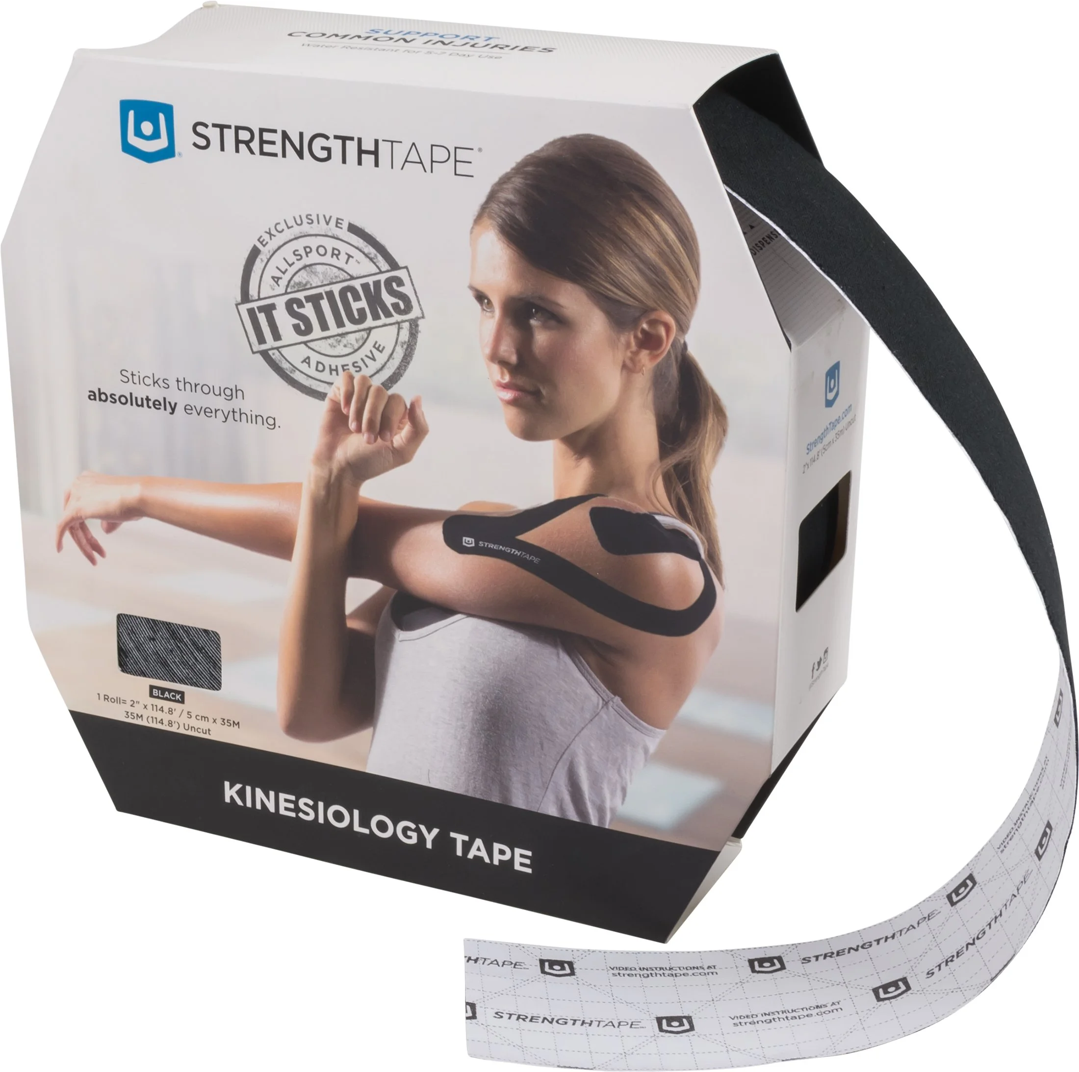 StrengthTape is a kinesiology athletic tape that can be used to support common injuries. Whether you are trying to come back from an injury, prevent an injury, or seeking an edge in performance, StrengthTape can help. Kinesiology tape differs from other athletic tapes both in the way it feels and the way it is applied. Rather than wrapping the tape completely around the injured area, kinesiology tape is applied to targeted areas directly over and around the injury. Its unique elastic properties provide support while allowing for a wide range of motion and helping to improve blood flow and lymphatic circulation.