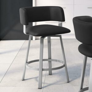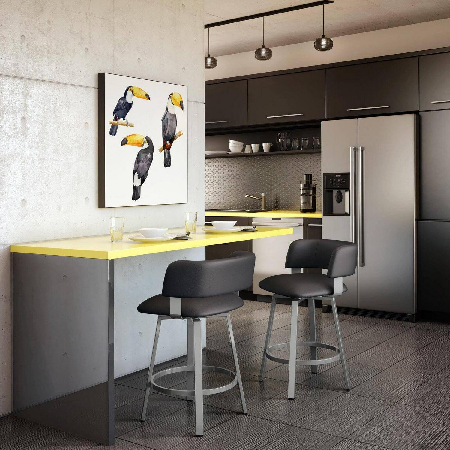 If you love the urban aesthetic, the Amisco Stinson Swivel Counter Stool is the perfect addition to your modern space. With a comfortable seat and a rounded backrest, it features a pared-down base with contrasting hard and soft angles. This sturdy, fully welded metal stool is made of superior North American steel and painted with lead-free, environmentally safe baked powder coating for a scratch-resistant finish. Made in Canada, it has a weight capacity of up to 300 lbs and comes with a 10-year limited residential warranty.
