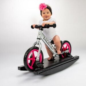 Babies everywhere are clapping their chubby little hands over the fact that they too can ride -or play- on a bike. As soon as your little one begins to crawl, they’re telling you they’re ready to explore and won’t stop… at least not until it’s nap time. The Strider 2-in-1 Rocking Bundle is the best way to teach balance and improve dexterity, cognitive ability, and spatial awareness (yeah, a kid’s bike company totally knows what those are). Besides eating, sleeping, and pooping, one of the coolest things kids do is form bonds – with parents, with family members, and with toys. The Strider 2-in-1 Rocking Bike Bundle helps your little bundle of biscuits bond with their very first bike before they ever take it to the rough and tumble cul-de-sac. The rocking attachment securely holds the Strider 12″ Pro Balance Bike in place as your baby literally rocks out. Eventually, they’ll be rocking so hard you’ll think they’re about to blast off into the stratosphere. Don’t worry, we disengaged the sweet rocket engines. This baby’s (no pun intended) all self-propelled. When your tater tot has mastered rocking and is ready to roll out, simply detach the Strider 12″ Pro. The premium 12″ Pro is the ultimate high-end bike for speed demons who crave the wind in their face and freedom at their fingertips, because not even a full diaper is enough to slow this puppy down. The Strider Pro is unisex and has a seat height range from 30-48 cm (11-19 in.), which means it fits children with an inseam of 30-51 cm (12-20 in.). With the Strider Rocking Base attached, this product is intended for ages 6-18 mos. The Strider 12 Pro Balance Bike detached from the Rocking Base is intended for children 18 months to 5 years old. With Strider Bikes learning to ride is child s play. The Strider 2-in-1 Rocking Bike aids kiddos in reaching development milestones so they learn to ride early (without training wheels!). Now, if only potty training were that easy.