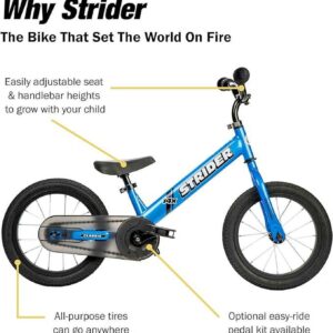 Strider – 14x Sport Balance Bike – Pedal Conversion Kit Sold Separately – Awesome Blue