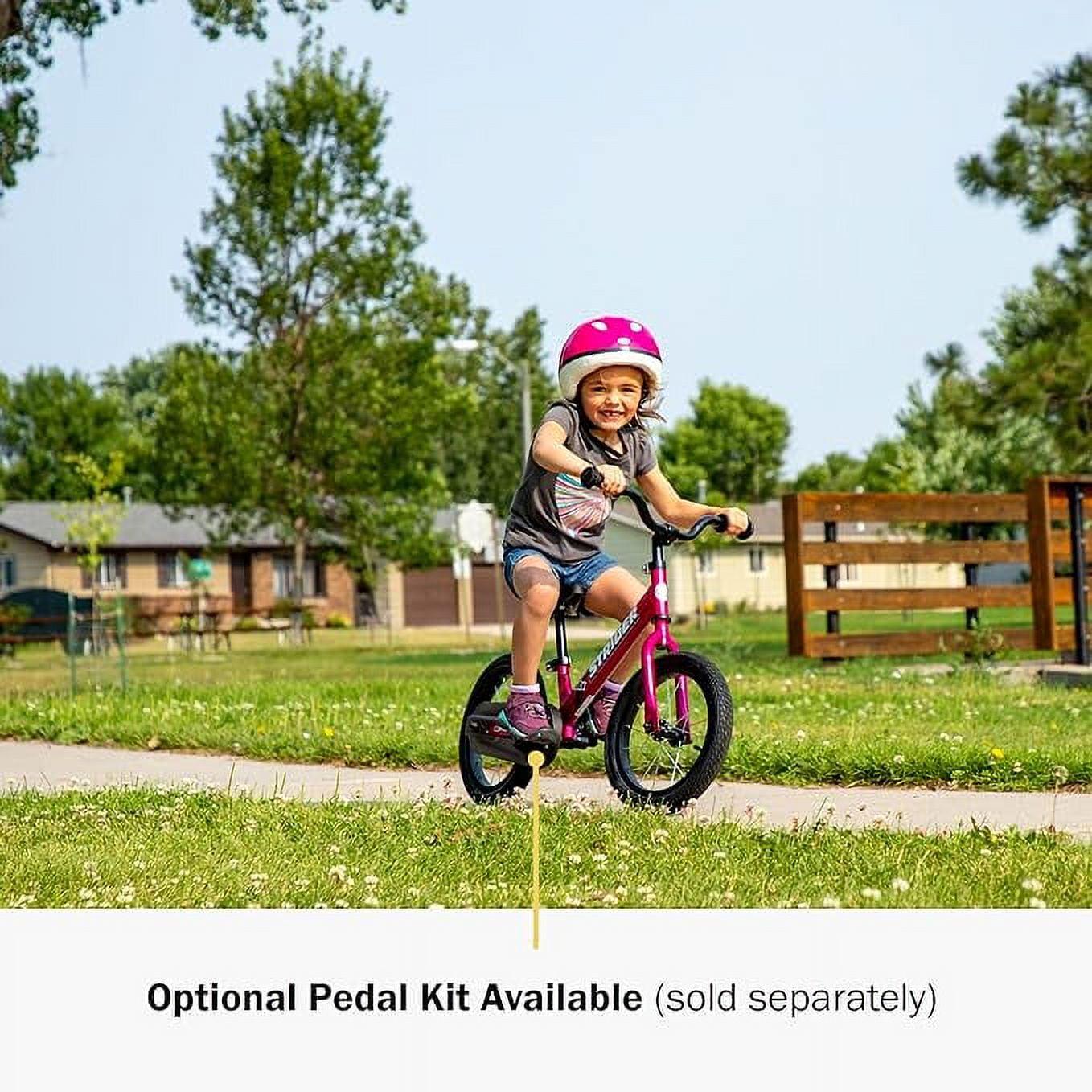 Instant success. That s what we wanted kids to experience on the Strider 14x. We ve put together all the right ingredients to give your kiddo a taste of confidence to seamlessly transition from riding a balance bike to pedaling like a pro. The success your child experiences when they ride a Strider is going to stay with them throughout their life. Kids from all over the world are learning how to ride on the 14x (unisex). It starts as a balance bike, which helps kiddos who either haven t been on a bike before or are veteran Strider riders gain confidence and balancing ability on a bigger bike. The performance footrest removes to attach the Easy-Ride Pedal Conversion Kit (sold separately). No need for a stress ball to control your aggravation, installation is quick and easy, we even give you a wrench to screw in the bolt. The Stride-Around narrow pedals allow kids to quickly put their feet down and stride when they need more momentum without bumps and bruises on little shins. Learning to pedal on the same bike you learned balance is a HUGE advantage. Parents can sit back and watch their child s confidence and excitement skyrocket. It gets better. We know kids grow like crazy, so we designed the 14x with an adjustable seat and handlebars. It will continue to fit them through multiple growth spurts. It is recommended for children ages 3-7 and fits inseams between 40-58 cm (16-23 in.). Your kid will ride around the neighborhood feeling like a superhero after watching you transform their balance bike to a pedal bike at the speed of light (or at least in a few minutes). They re realizing their skills and freedom with new found confidence and thirst for adventure. Yeah, we d call that a parenting win.