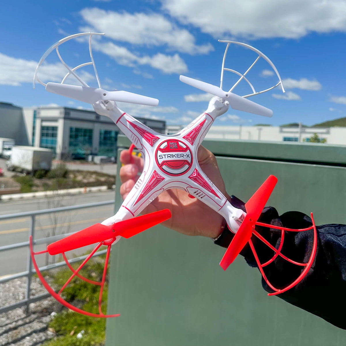 Features: Electric Powered HD 720p Camera 2.4GHz Transmitter Removable Rotor Guards 4.5 Channel Built-In Gyro 3D Flight Autopilot Altitude Lock Speed Controls Flip Stunt Mode Easy Mode Hover Mode Launch Toss 4 Main Rotors Durable Light Weight Body Ready to Fly Includes: World Tech Toys Striker-X 2.4GHz 4.5CH RC HD Camera Drone 2.4GHz Transmitter USB Charging Cable 3.7V 500mAh LiPo Battery 4GB Micro SD Card Micro SD Card Adapter 4 Spare Rotor Blades Screwdriver Manual Specifications: Length: 12 Inches Width: 12 Inches Height: 3.25 Inches Battery Requirements: Transmitter: 4 AA Batteries (Not Included) Camera: Requires Micro SD Card to Record (Included) Includes: World Tech Toys Striker-X 2.4GHz 4.5CH RC HD Camera Drone 2.4GHz Transmitter USB Charging Cable 3.7V 500mAh LiPo Battery 4GB Micro SD Card Micro SD Card Adapter 4 Spare Rotor Blades Screwdriver Manual Specifications: Length: 12 Inches Width: 12 Inches Height: 3.25 Inches Battery Requirements: Transmitter: 4 AA Batteries (Not Included) Camera: Requires Micro SD Card To Record (Included)