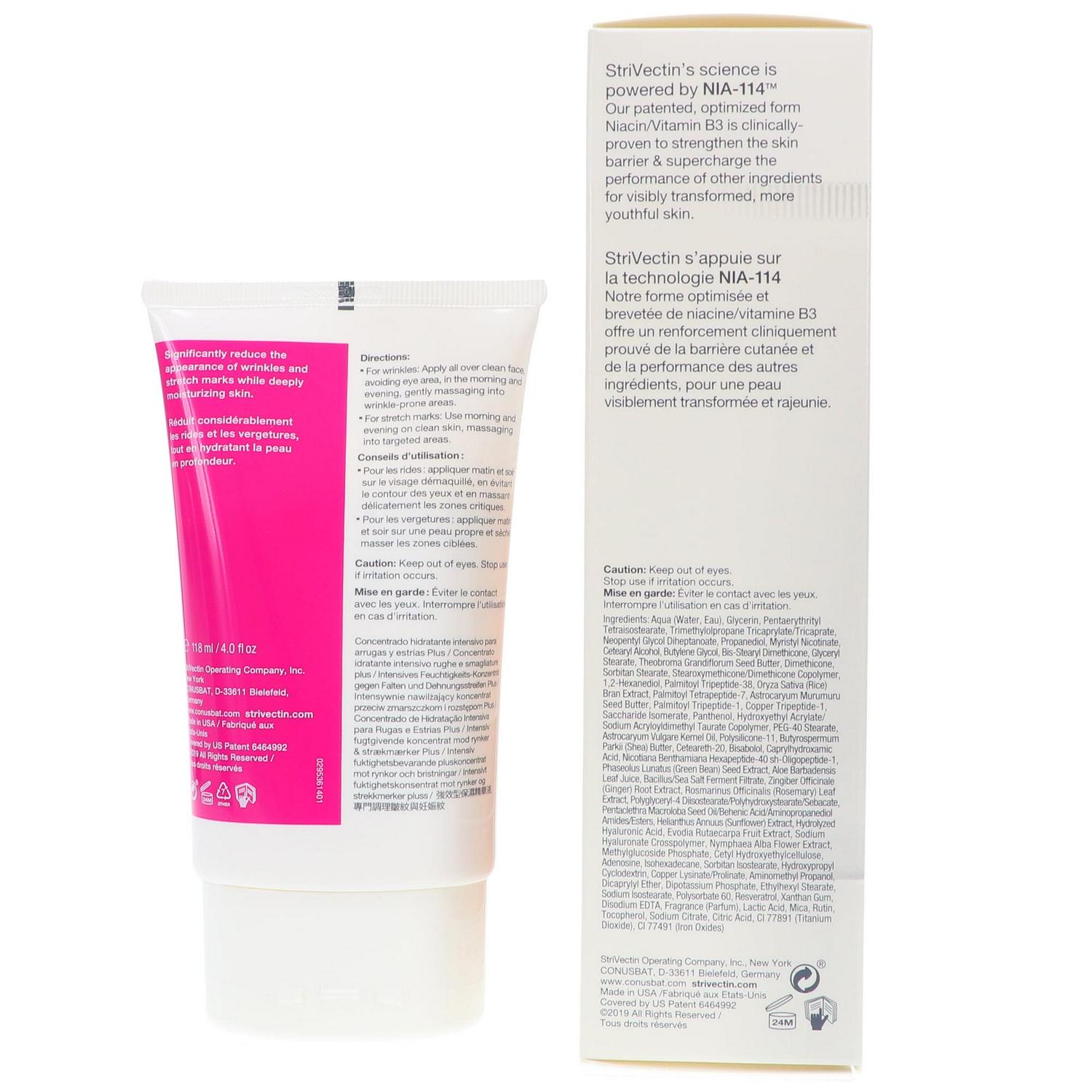 Product Details:Strivectin’s #1 wrinkle-fighting moisturizer, now upgradedWHAT IT ISOur iconic stretch mark cream turned anti-wrinkle phenomenon is now more concentrated and powerful than ever. Powered by NIA-114 and our upgraded Collagex-CE Complex with Copper Tripeptide and Marine Ferment, this next-generation moisturizer now targets 10 types of skin collagen and is clinically shown to boost elasticity and visibly reduce wrinkles and stretch marks for youthful-looking skin. This transformative product targets 10 types of collagen to reduce the look of wrinkles in 2 weeks* and visibly fades stretch weeks in 4 weeks.KEY INGREDIENTS Collagex-CE Complex with Copper Tripeptide and Marine Ferments Hyaluronic Acid White Water Lily Extract Green Bean Seed Extract Tucuma, Cupuacu and Murumuru butters