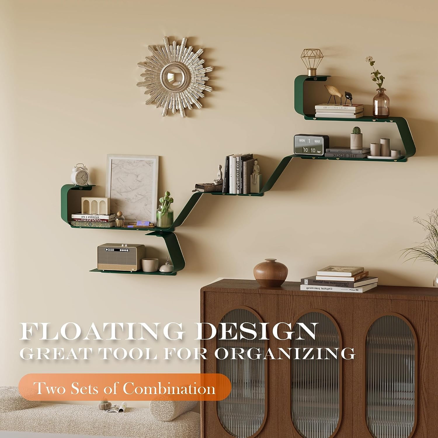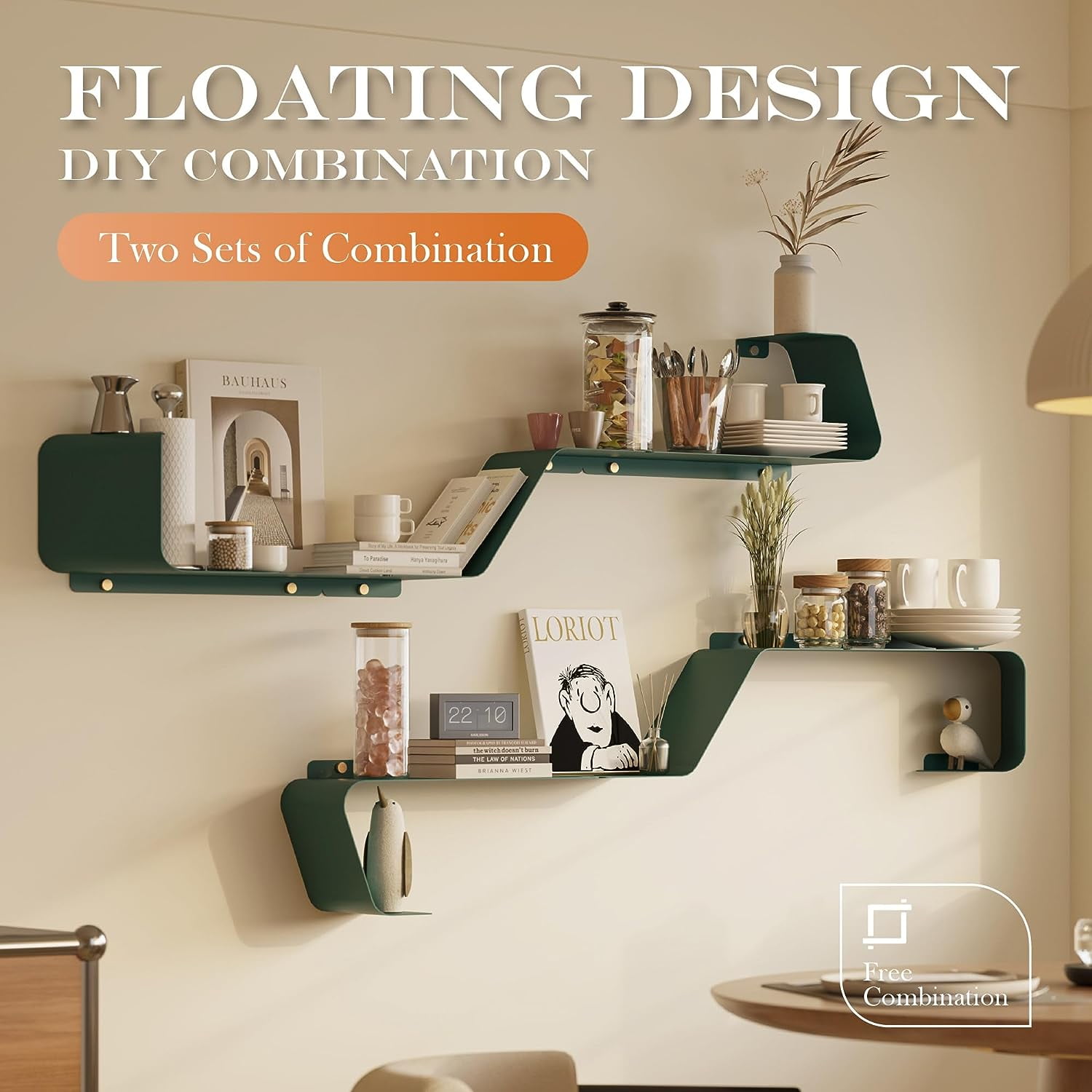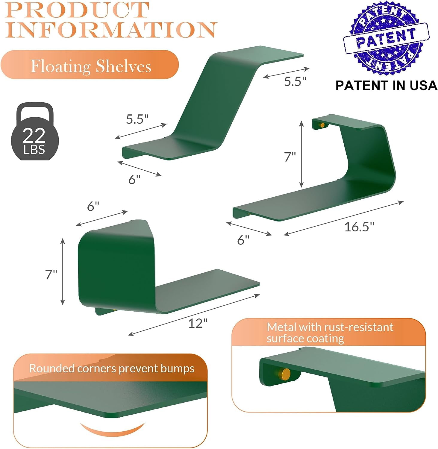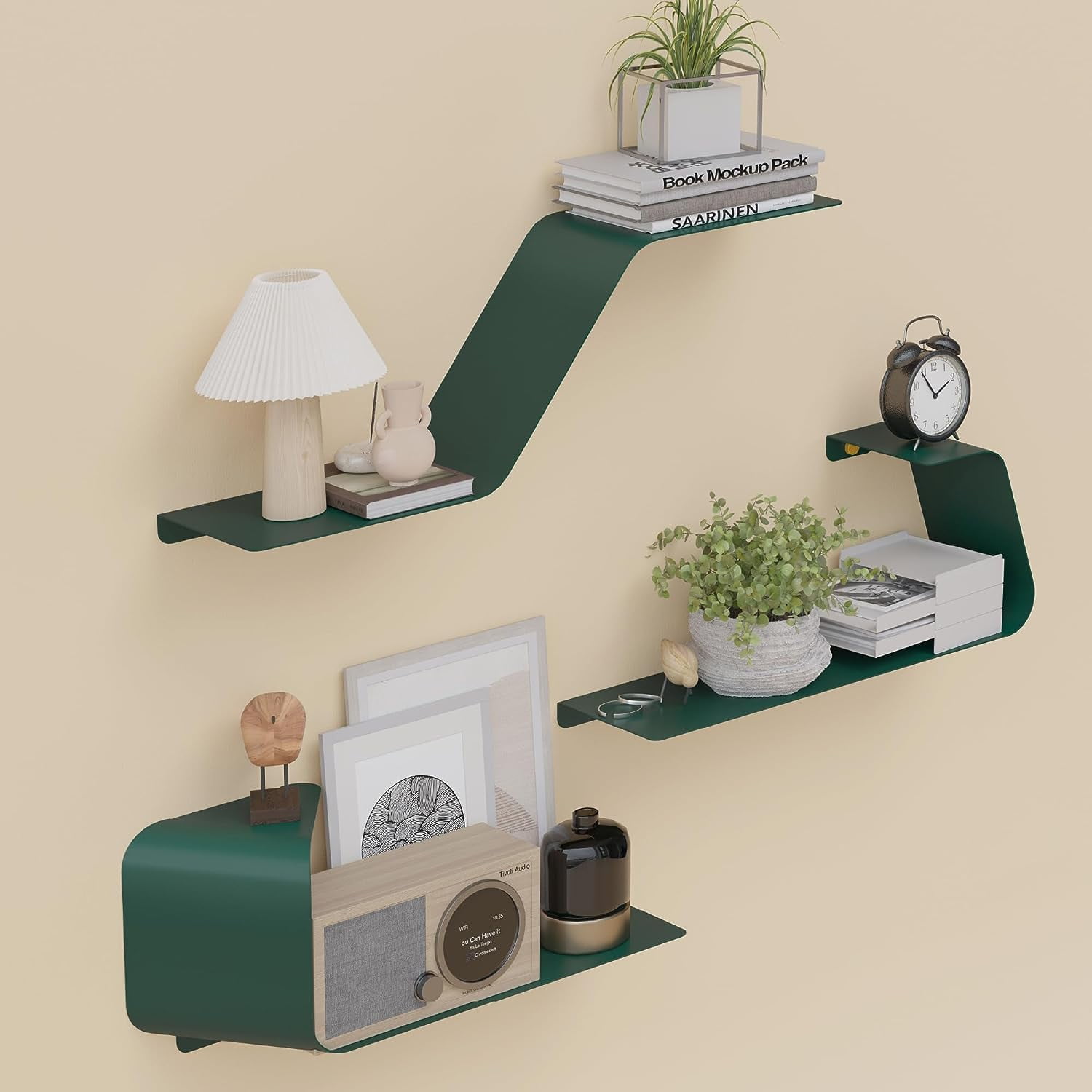 Sttoraboks Floating Shelves, Wall Shelf, Set of 3 Wall Mounted Metal Shelves with DIY Design for Wall Storage, Book Shelf, Display Shelves for Bathroom Bedroom Kitchen Living Room for Home, Green