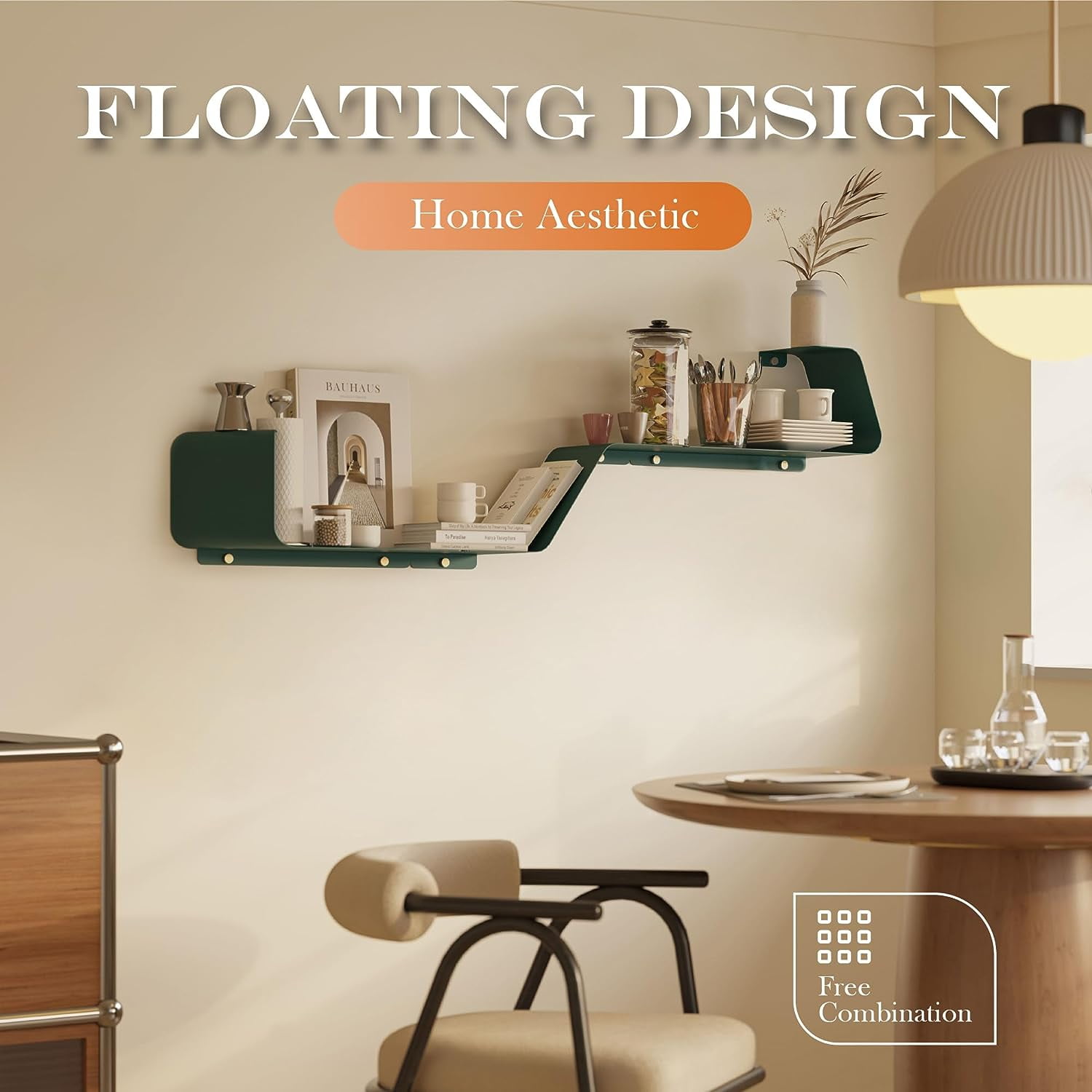 Multifunctional Floating Shelf: This unique piece offers an inventive design flexible configuration to fit any size of wall space. Transform wasted wall space into a spacious storage area. These shelves, a bedroom showcase for prized items, a living room display for photos, a bathroom organizer for toiletries, or a kitchen rack for spices and so on. It doesn’t just offer organization, it elevates your living space, redefining the aesthetic of your home. Home art that shows personality and style: The unique design of these three floating shelves, and five different color, transforms them into art. Be it the profound black, the pure white, the vibrant orange, the refreshing green, or the understated grey. Choice the color which suitable for your room. each color acts like an artist’s brushstroke, bringing unlimited imagination and potential to your space. Embrace home art that truly reflects your personality and style. Free Design and Easy Installation: The simple and stylized 3-piece shelf gives you endless creative freedom. According to your personal preference, you can freely match these sets of parts to create your unique decorative style, each combination is a reinterpretation of the wall space, is a deep love and desire for life. All you need is a drill and follow our instructions to install your unique floating shelf in 3 steps! High Quality Metal Materials Easy to Clean: The floating shelf from premium metal, it is not only easy to clean but remarkably durable. Its surface features an anti-rust coating for excellent oxidation resistance. The robust metal construction ensures it can bear significant weight without deformation. Just wipe gently with a rag, you can make it restore the original luster. Customer Service: We’re so confident about our top-quality floating shelves that if you are not completely satisfied with our floating shelves, you’ll get every penny refunded to you. We’re also here to support you if you have any questions or queries, please get in touch and we’ll gladly help. We are looking forward to your order! Important: Our floating shelves are meant to be installed on solid wood studs or solid concrete wall for best and secure results.