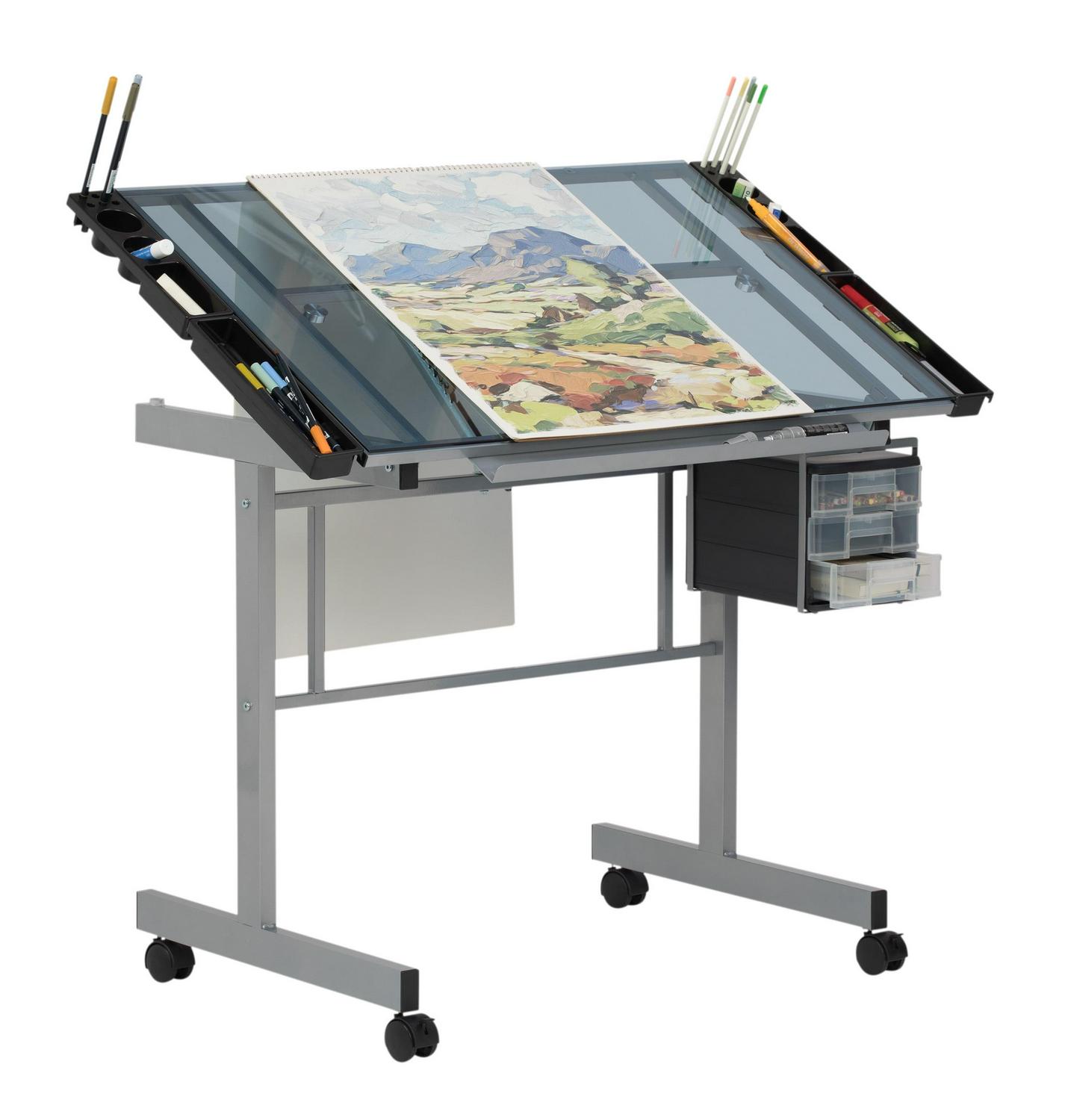 Studio Designs Glass Top Vision Rolling Drafting Table