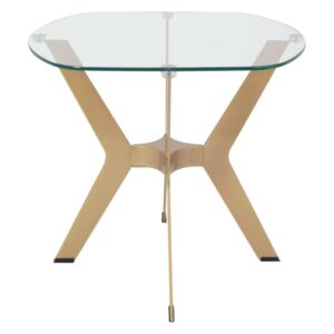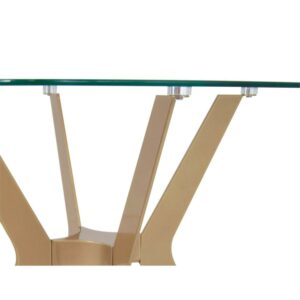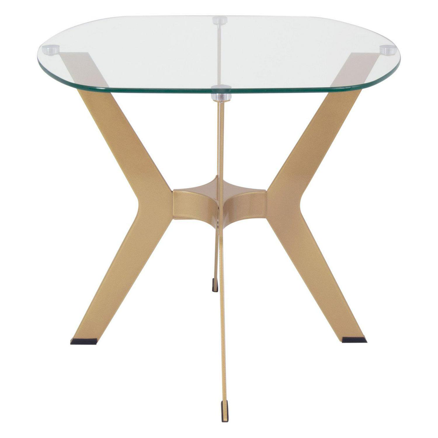 For the finishing touch to your mid-mod living space, add the Studio Designs Home Archtech 24 in. Modern End Table. This beauty stands on an angular leg base topped with a glamorous, powder-coated finish in gold. To make it as functional as it is chic, the end table is completed by a round, tempered glass surface.