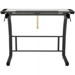 The innovative features of the TriFlex Drawing Table by Studio Designs make it a unique addition to your office or studio. The “Dual Tilt Design” adjusts from standard desk top height of 31 inches to a standing desk height of 39.5 inches. The side handles allow you to lock into these positions for your various needs and projects. It also allows the tabletop to tilt up to 22 degrees in the standing position or up to 68 degrees in the sitting position. The near vertical tilt makes it the perfect art table when using art pencils or pastels. The dust and excess residue can effortlessly be wiped to fall on the ground. The ingenious versatility of this table makes it three desks in one. It can be used as a writing table, drafting table or standing desk. Light Pad support bars (sold separately, Item# 10030) can also be added to make it a light table.