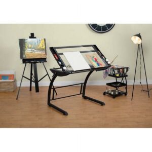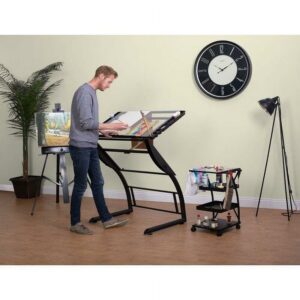 Studio Designs Triflex Adjustable Glass Top Crafting Table, Black