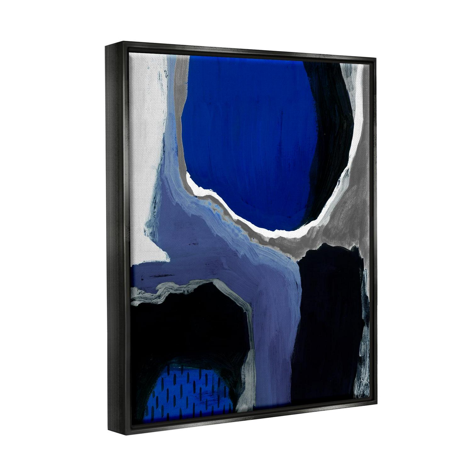 Stupell Industries Abstract Masculine Cobalt Blue Grey Black Design Jet Black Framed Floating Canvas Wall Art, 16×20, by Studio W