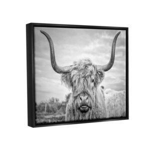 Stupell Industries Black and White Highland Cow Photograph Jet Black Framed Floating Canvas Wall Art, 16×20, by Joe Reynolds