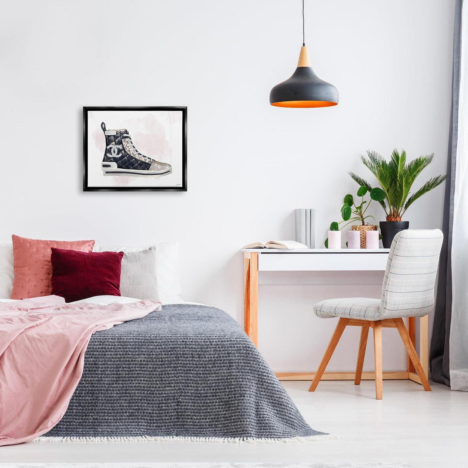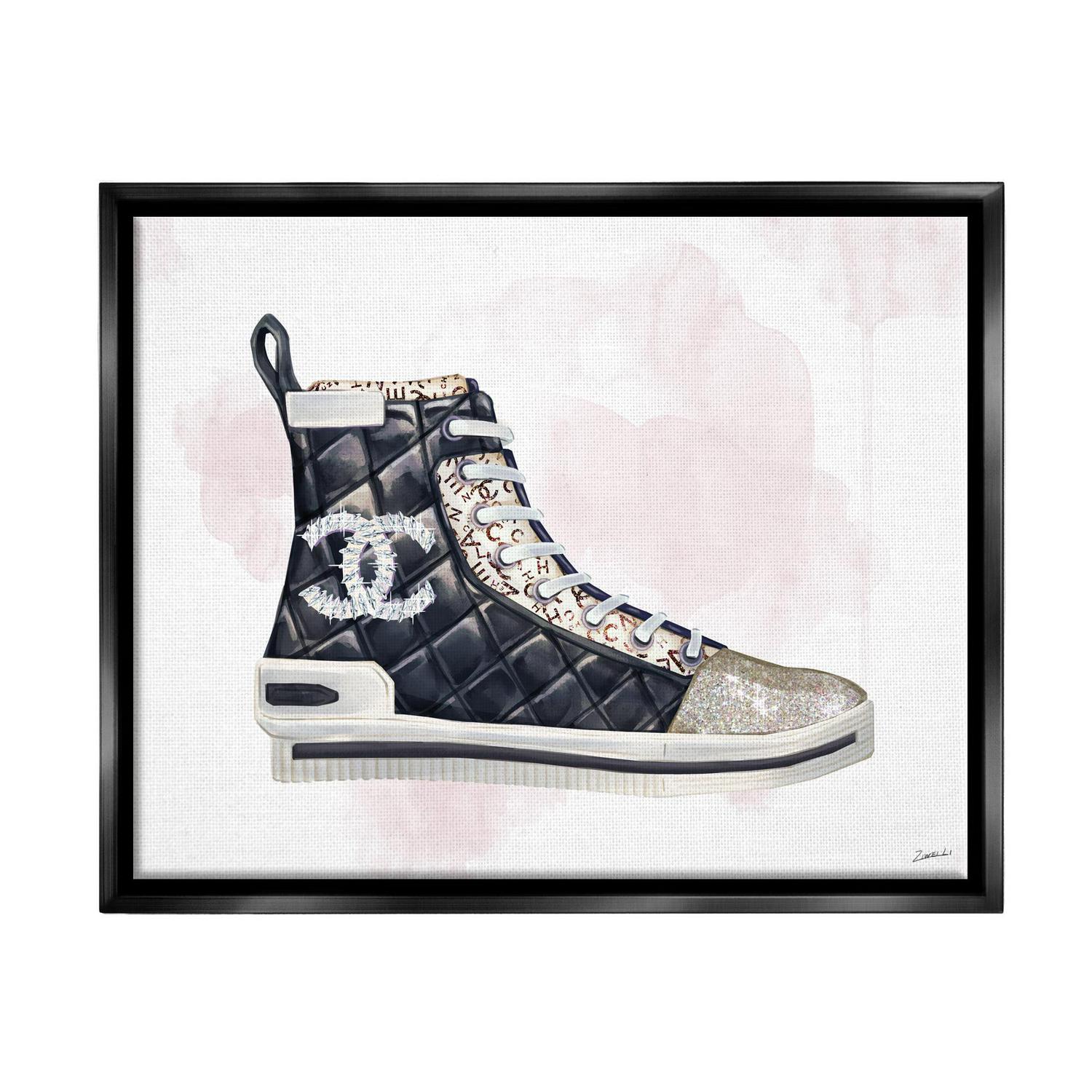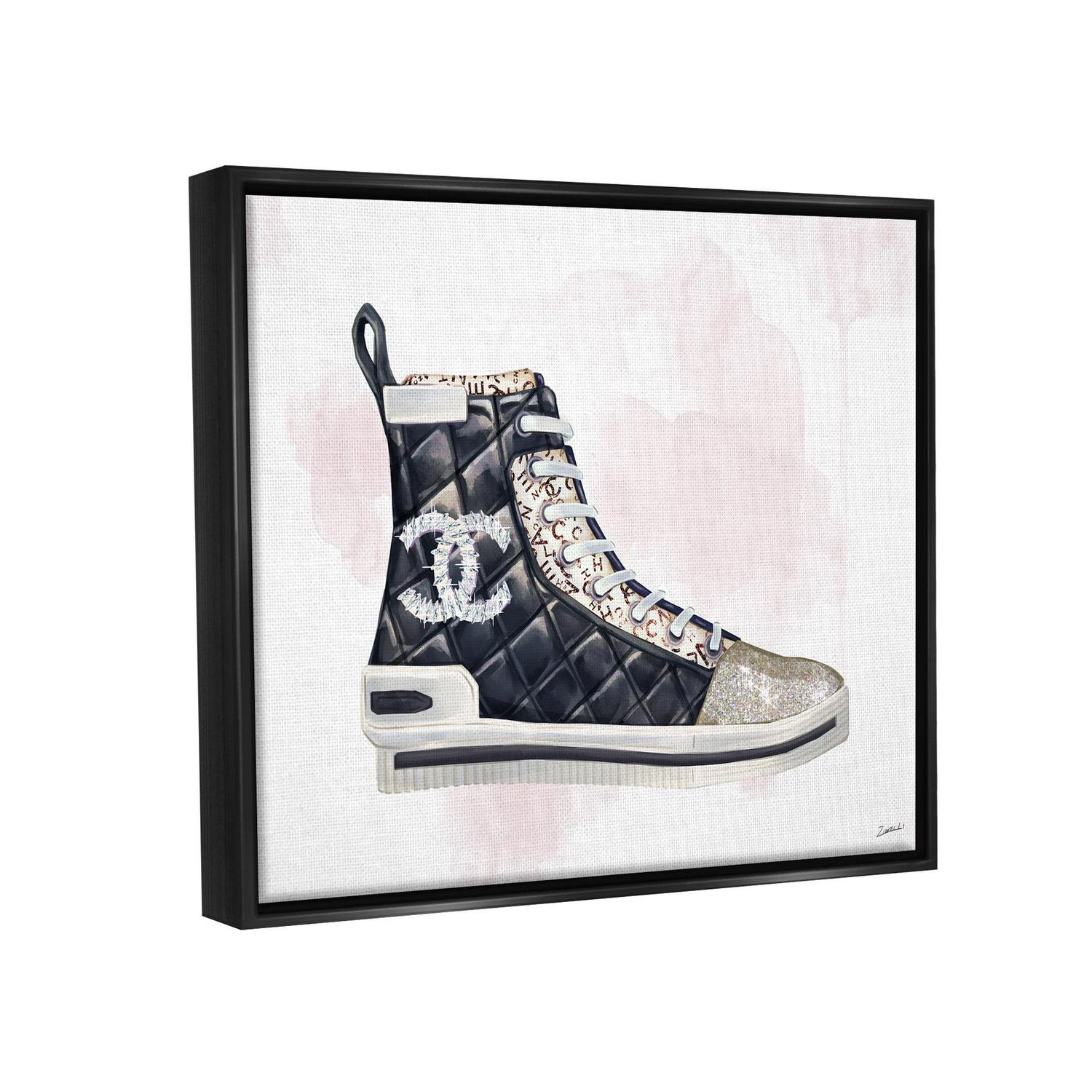 Stupell Industries Glam Fashion Quilted Sneaker Designer Style Jet Black Framed Floating Canvas Wall Art, 16×20, by Ziwei Li
