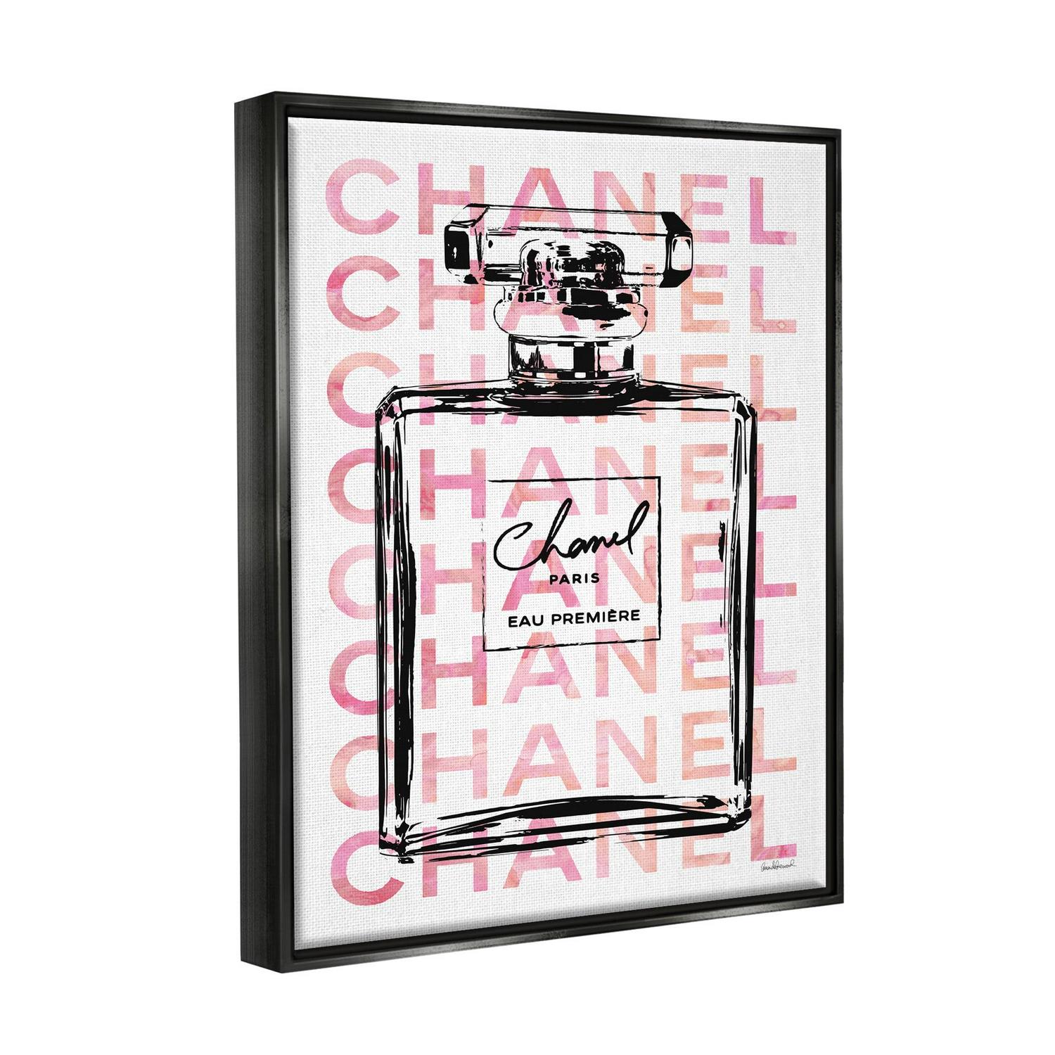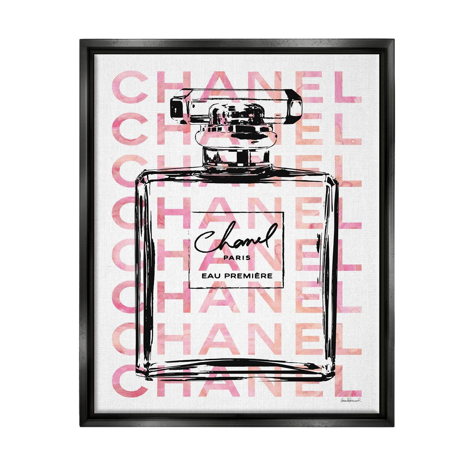 Stupell Industries Glam Perfume Bottle With Words Pink Black Jet Black Framed Floating Canvas Wall Art, 16×20, by Amanda Greenwood